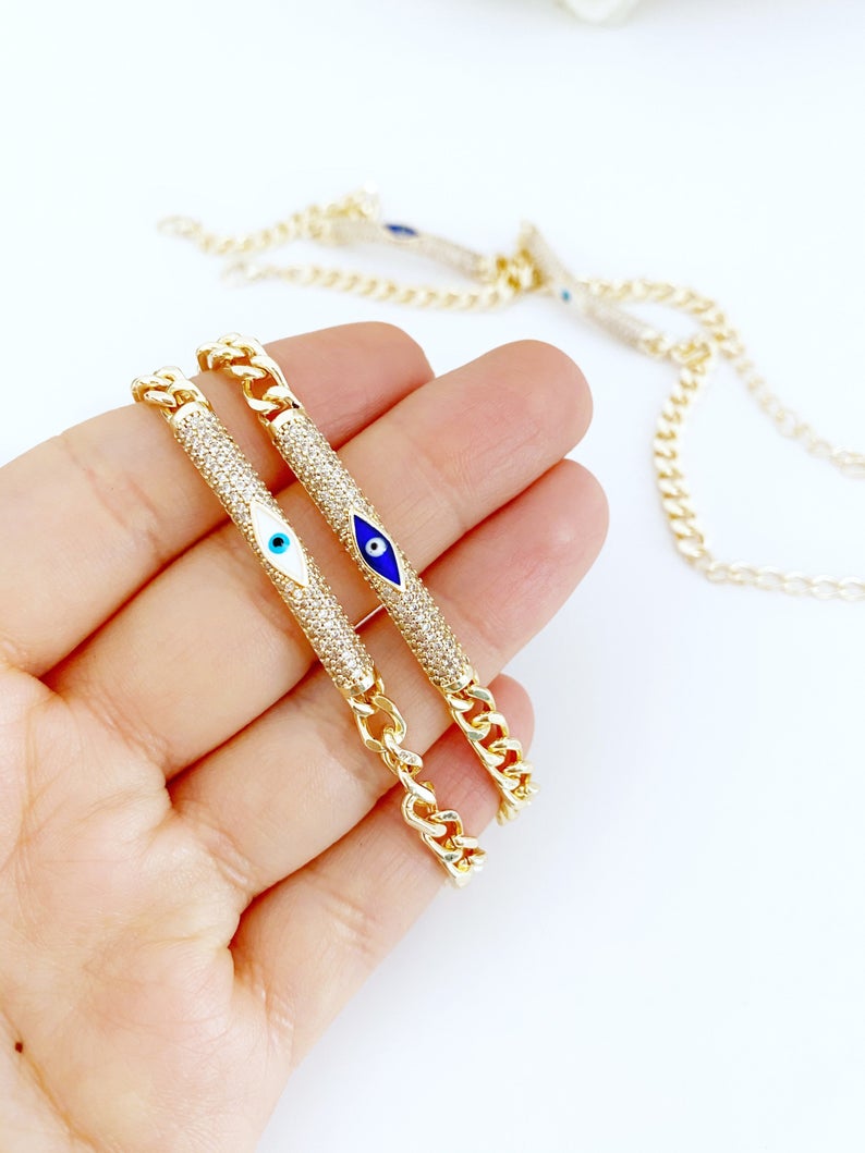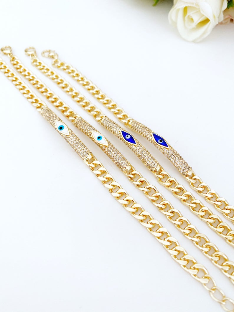 In summary, the Evil Eye Bracelet is a stunning piece of jewelry that combines beauty, symbolism, and versatility. With its elegant gold link chain and protective evil eye charms, it is the perfect accessory for anyone looking to enhance their style while embracing the positive energy of the evil eye. Don't miss out on the opportunity to own this exquisite bracelet or gift it to someone special in your life.