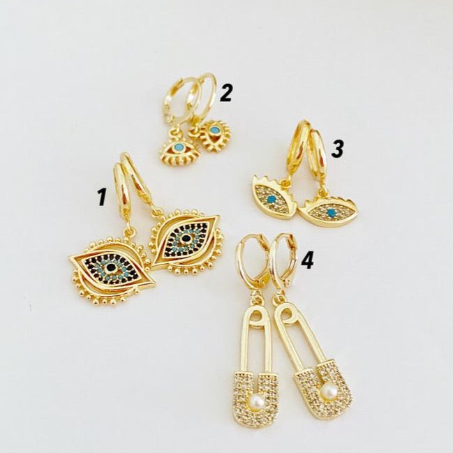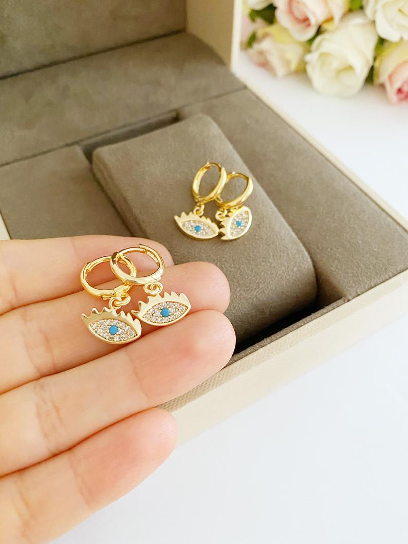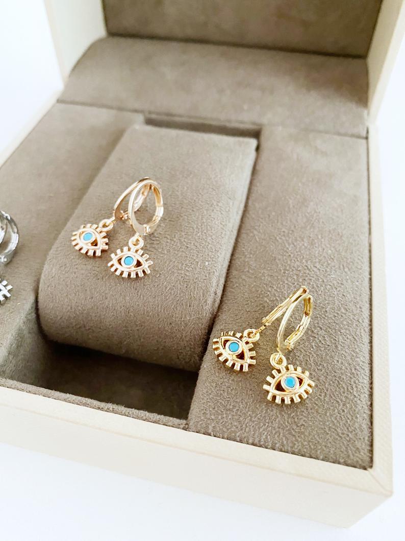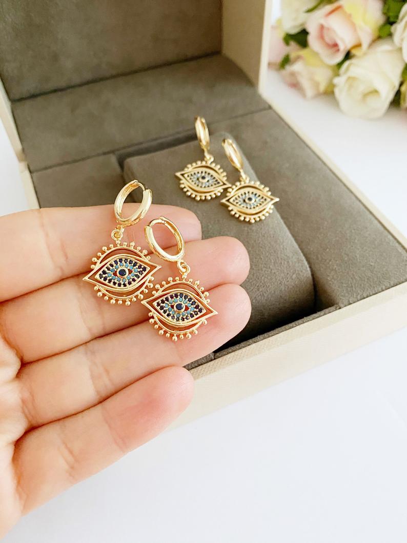 Handmade gold evil eye earrings