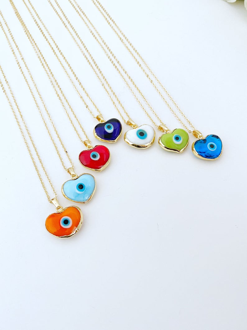 The Evil Eye Necklace is a beautifully crafted piece of jewelry that combines elegance with cultural significance. This necklace is not just a fashion accessory; it serves as a protective talisman, making it an ideal gift for loved ones, especially on special occasions like Mother's Day. The necklace features a stunning heart-shaped evil eye charm, which is believed to ward off negative energy and bring good luck to the wearer.