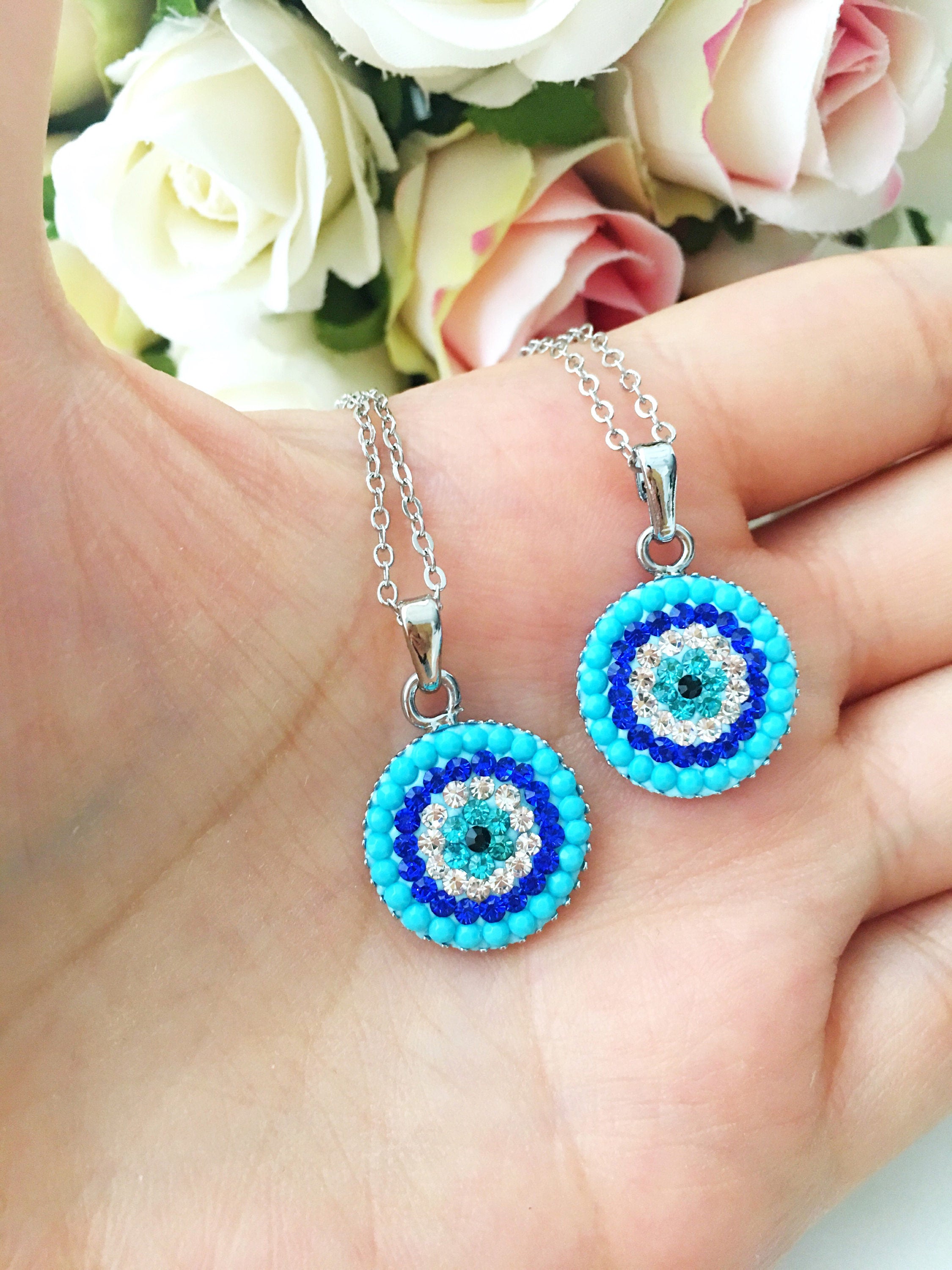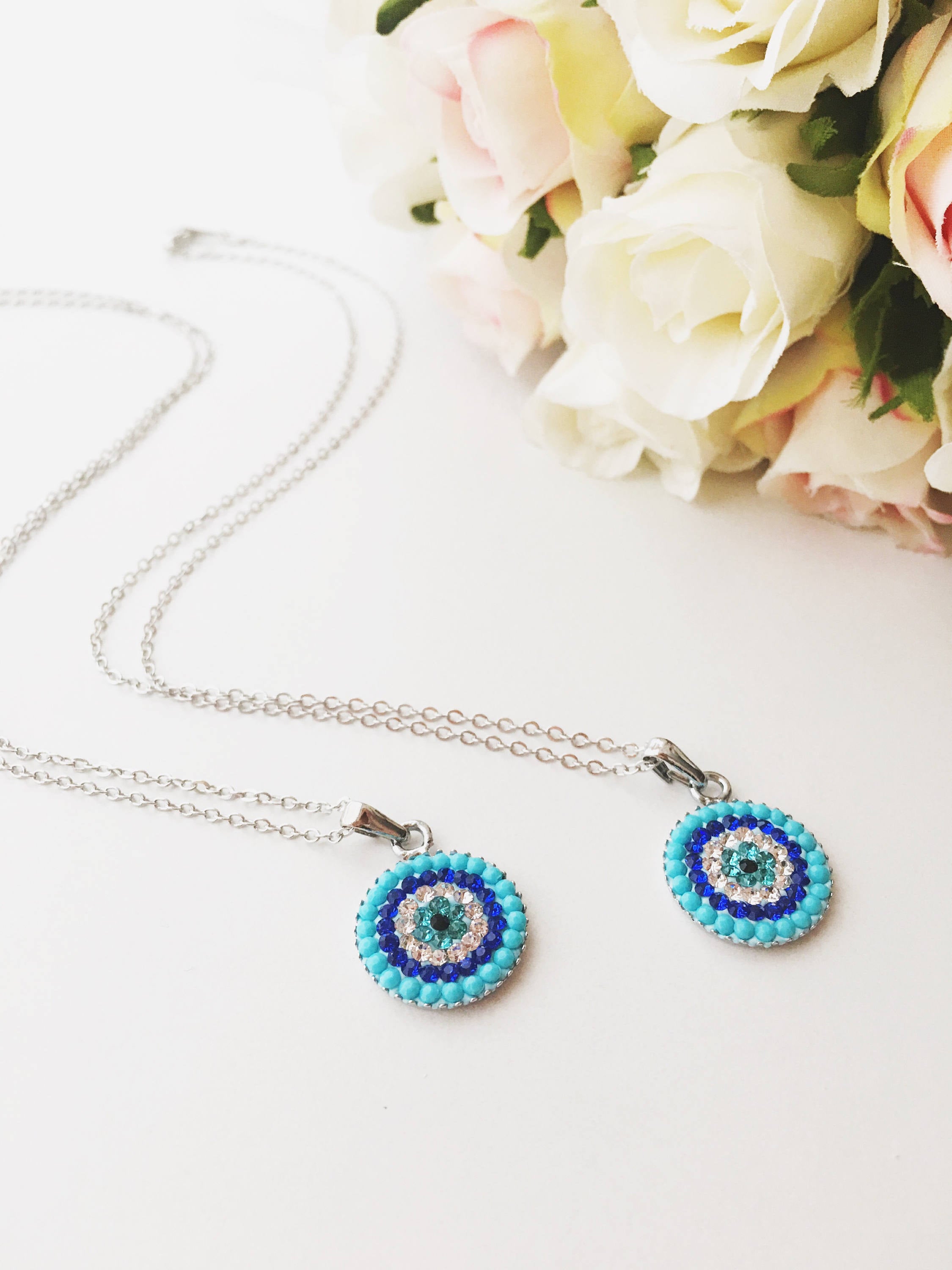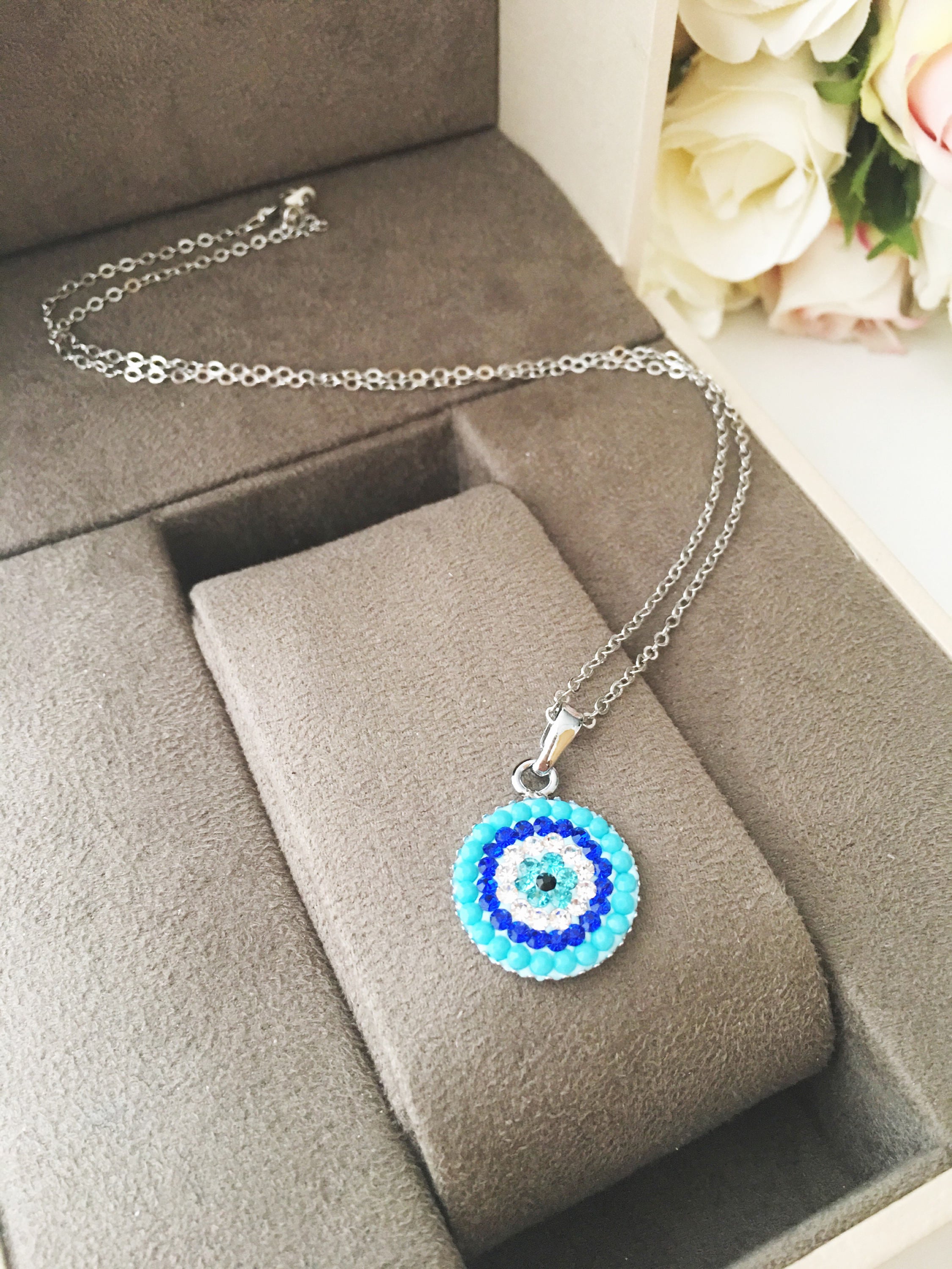 This silver evil eye necklace is available in multiple plating options, including rose and gold plating. This versatility allows you to choose a color that complements your personal style or matches your existing jewelry collection. Each option adds a different flair to the necklace, making it suitable for various occasions.
