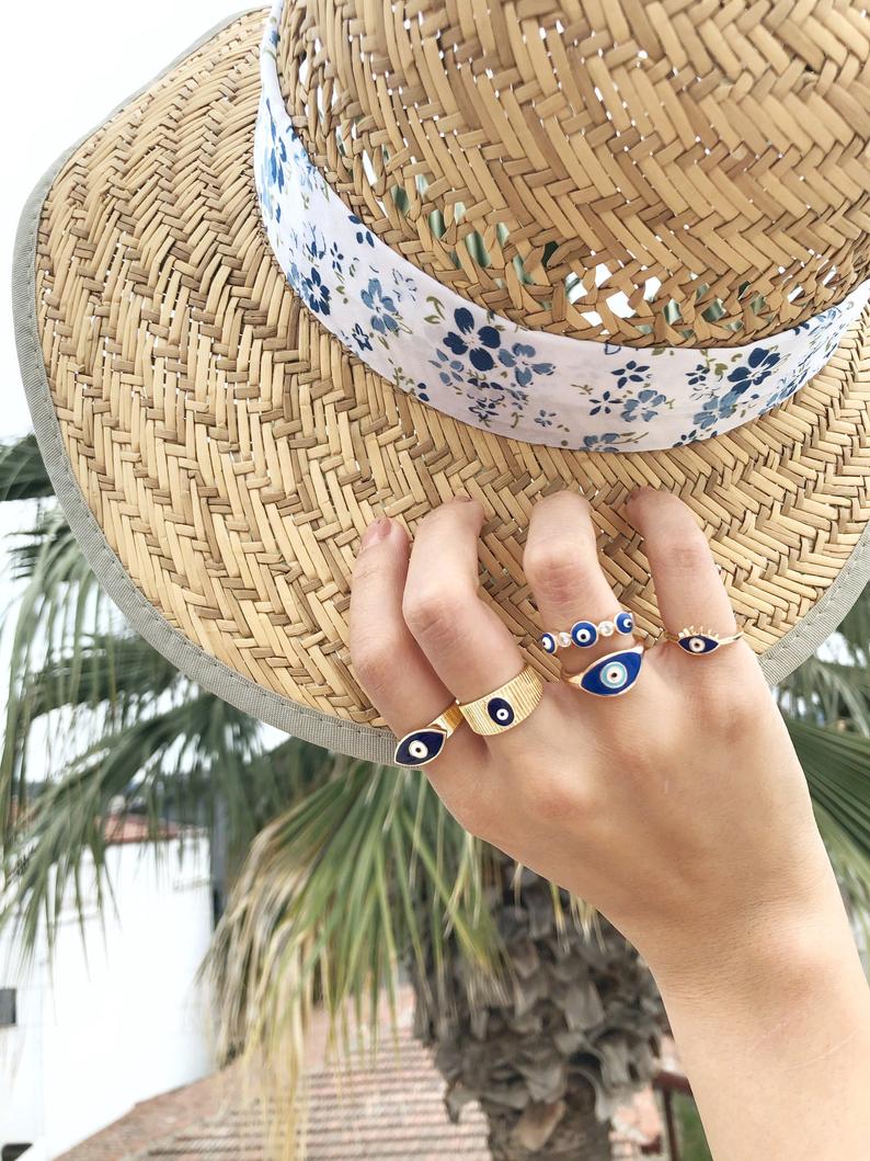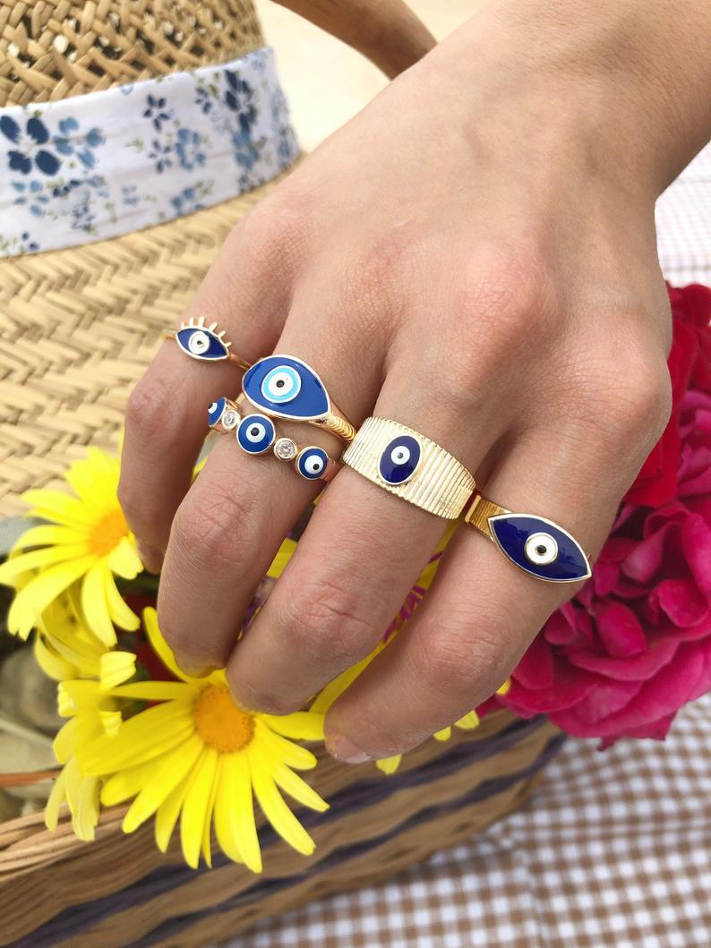 These rings are not just beautiful accessories; they also carry significant meaning. The evil eye symbol has been used for centuries in various cultures, particularly in Turkish tradition, as a protective talisman. Wearing these rings can serve as a reminder of positivity and protection in your daily life. They are perfect for everyday wear, adding a touch of elegance and charm to any outfit.