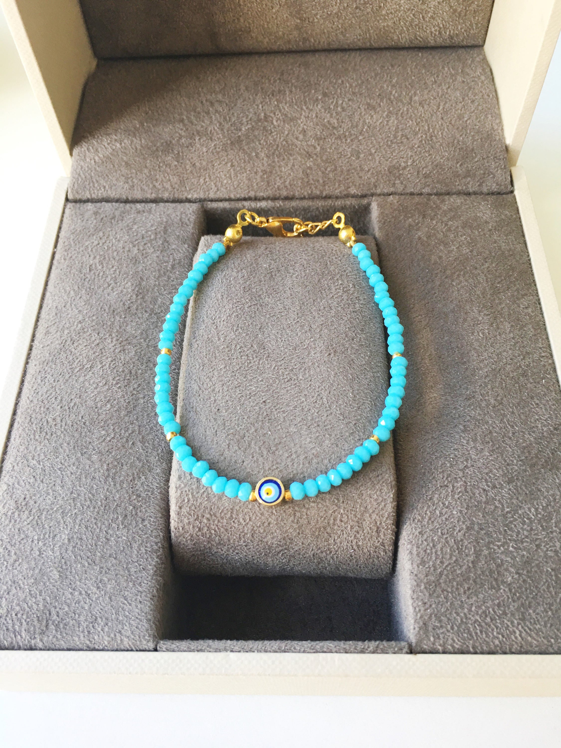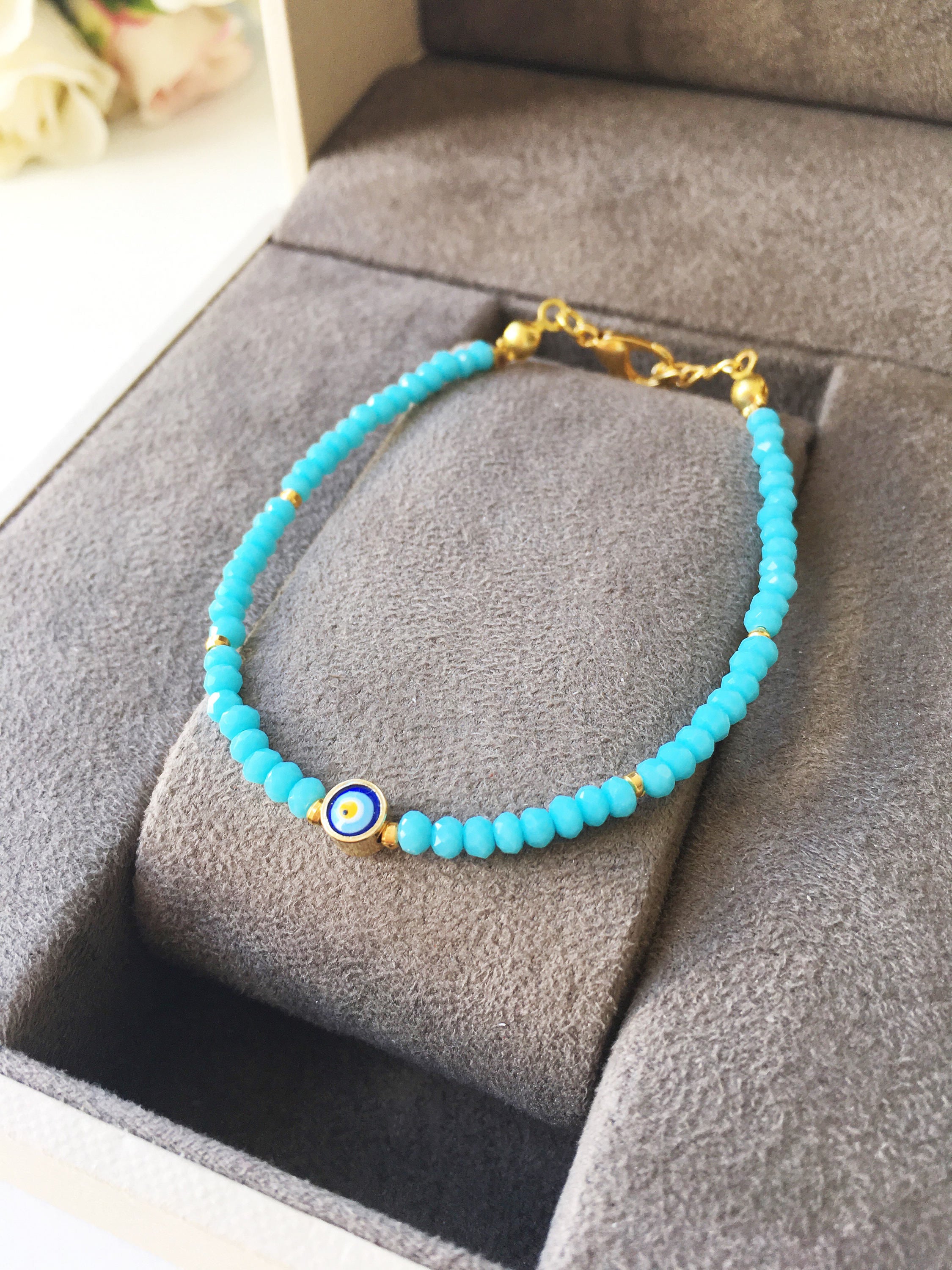 To ensure the longevity of your Evil Eye Turquoise Bead Bracelet, it's essential to take proper care of it. Avoid exposing it to harsh chemicals or prolonged water exposure. When not in use, store it in a cool, dry place away from direct sunlight. With the right care, this bracelet will remain a cherished piece in your jewelry collection for years to come.