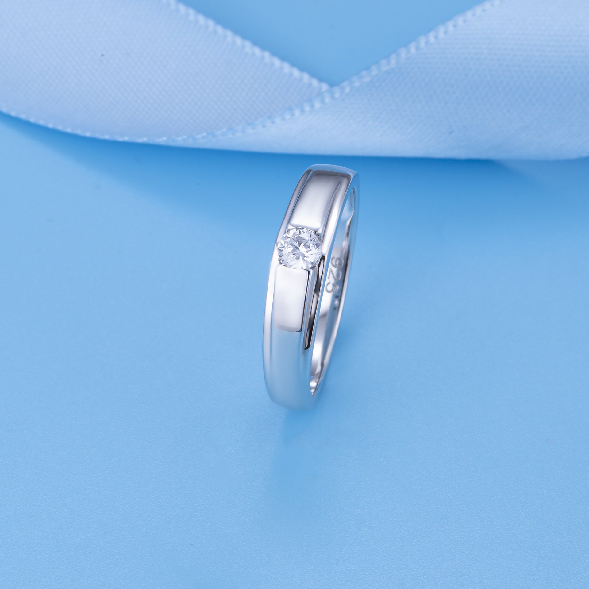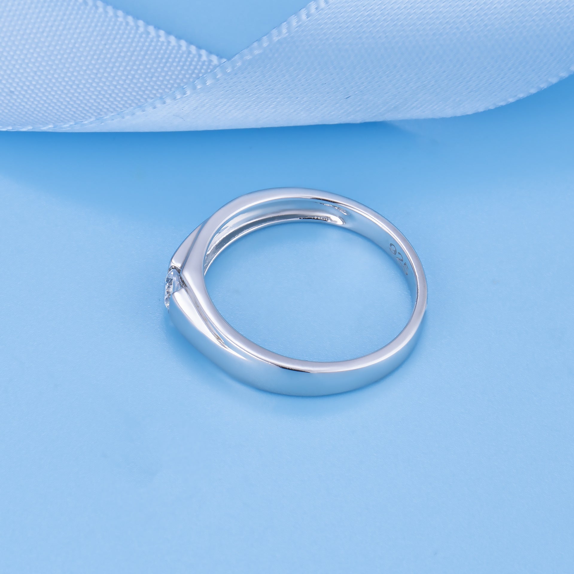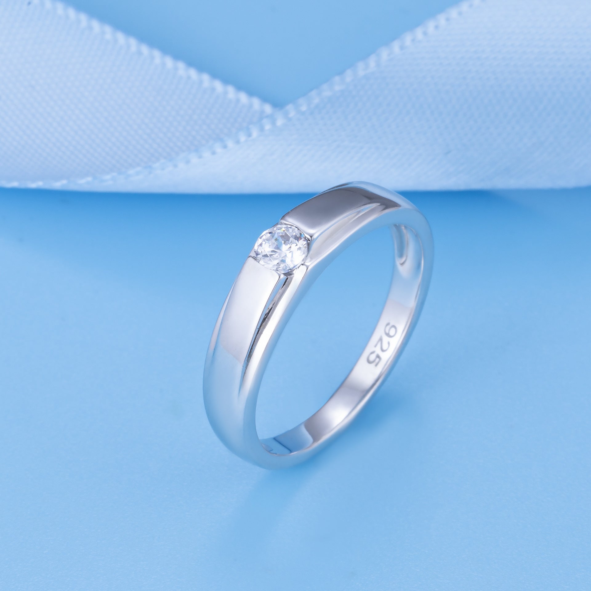 A stylish fashion 925 silver single stone ring featuring a sparkling central stone, perfect for any occasion.
