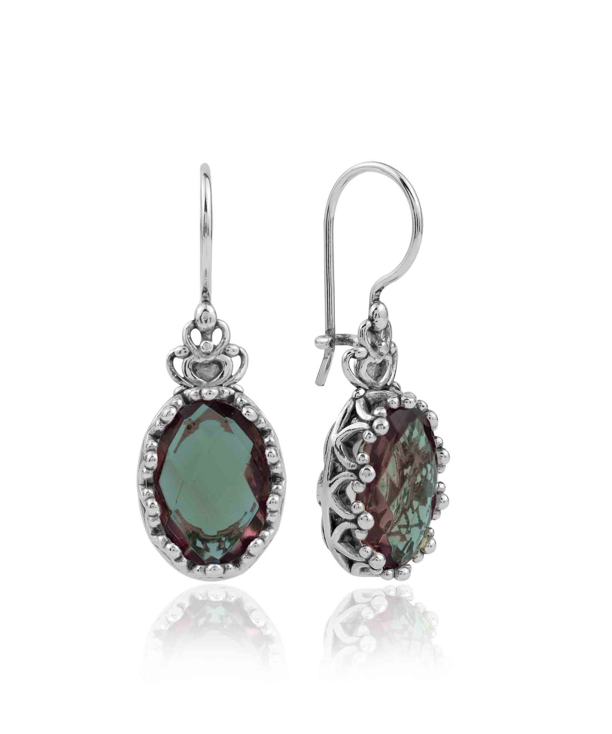 In summary, our Filigree Art Alexandrite Gemstone Crown Figured Women Silver Oval Drop Earrings are a stunning blend of artistry, elegance, and spiritual significance. With their unique design, high-quality materials, and captivating gemstone, they are sure to become a cherished addition to your jewelry collection.