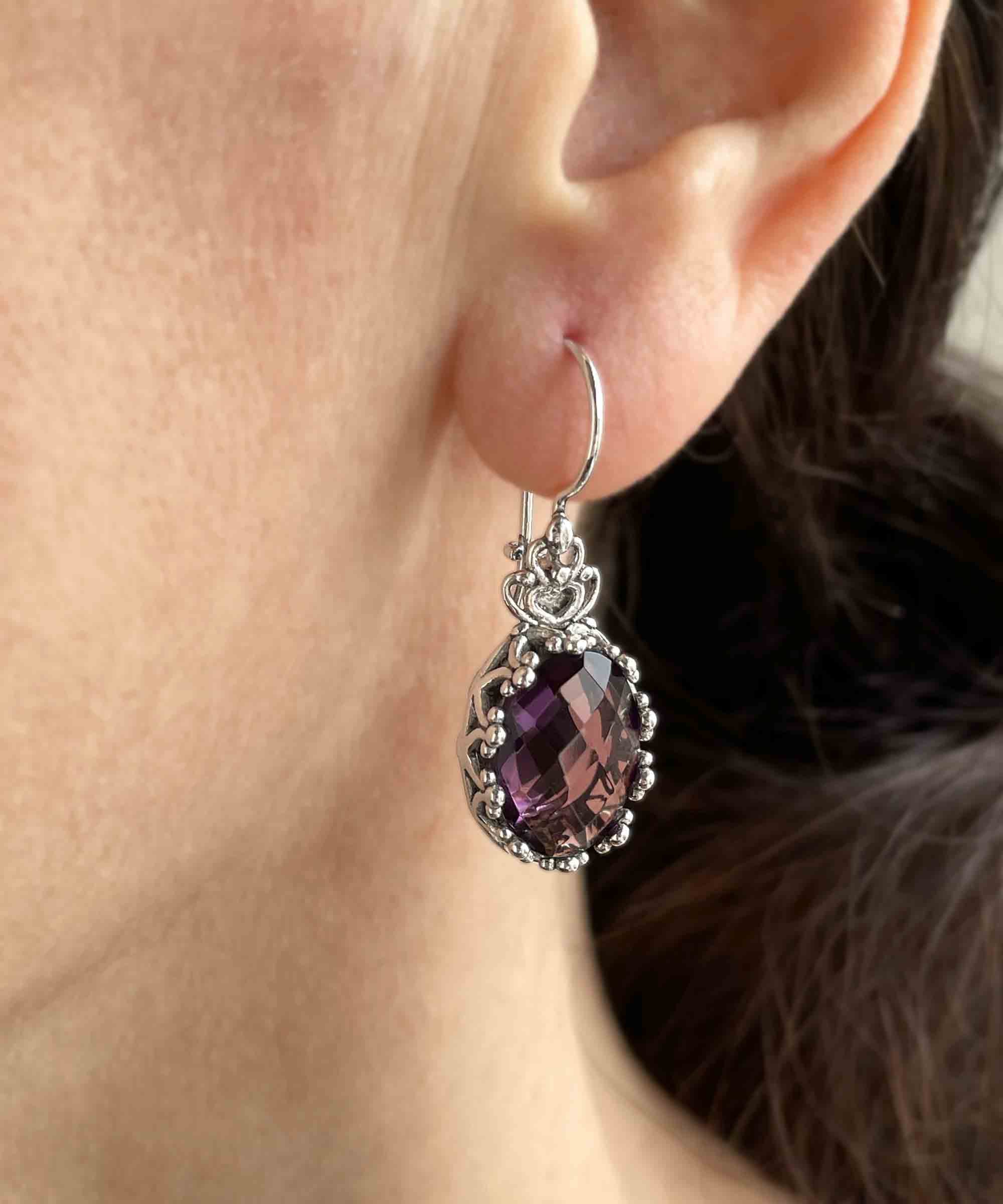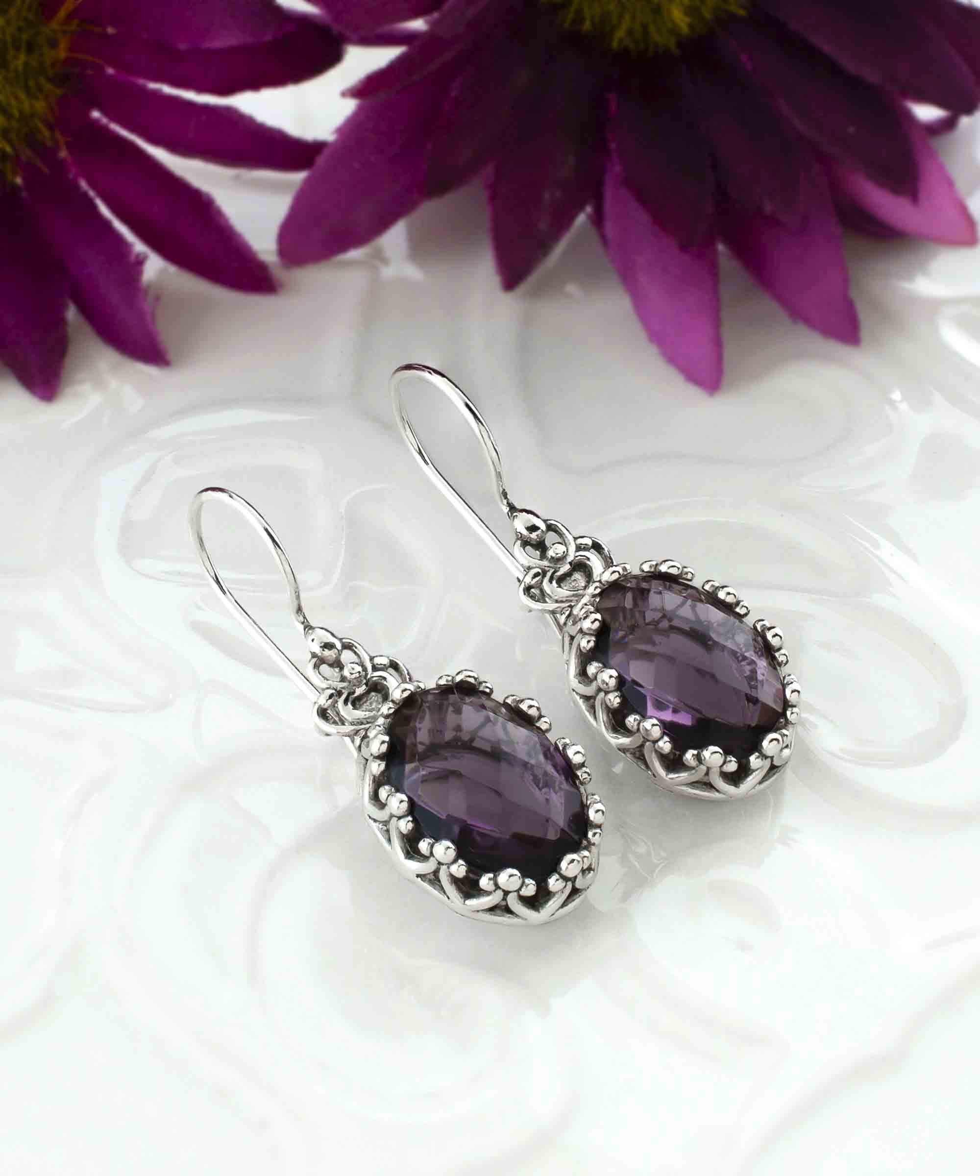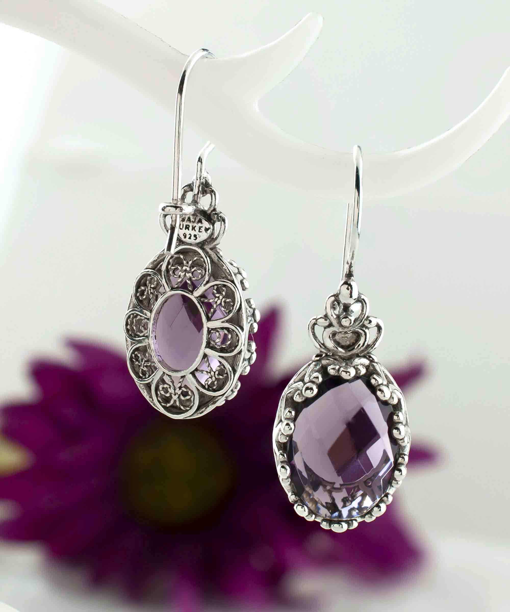 Whether you're looking for a special gift for a loved one or simply want to treat yourself to something truly special, these filigree art solid silver amethyst gemstone oval drop earrings are an ideal choice. Their elegant and eye-catching design ensures that they will make any occasion extra special, from weddings to anniversaries or even a night out on the town.