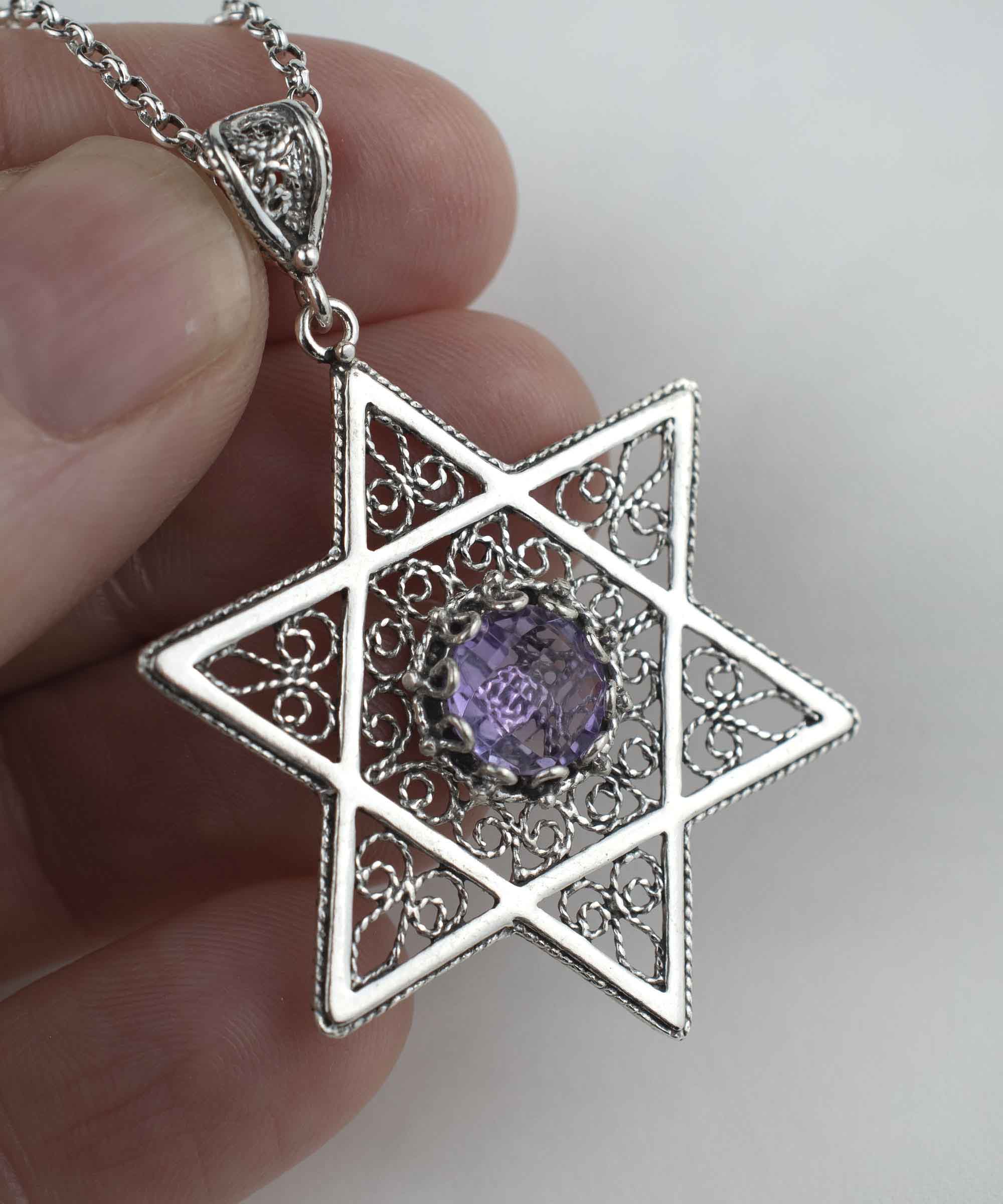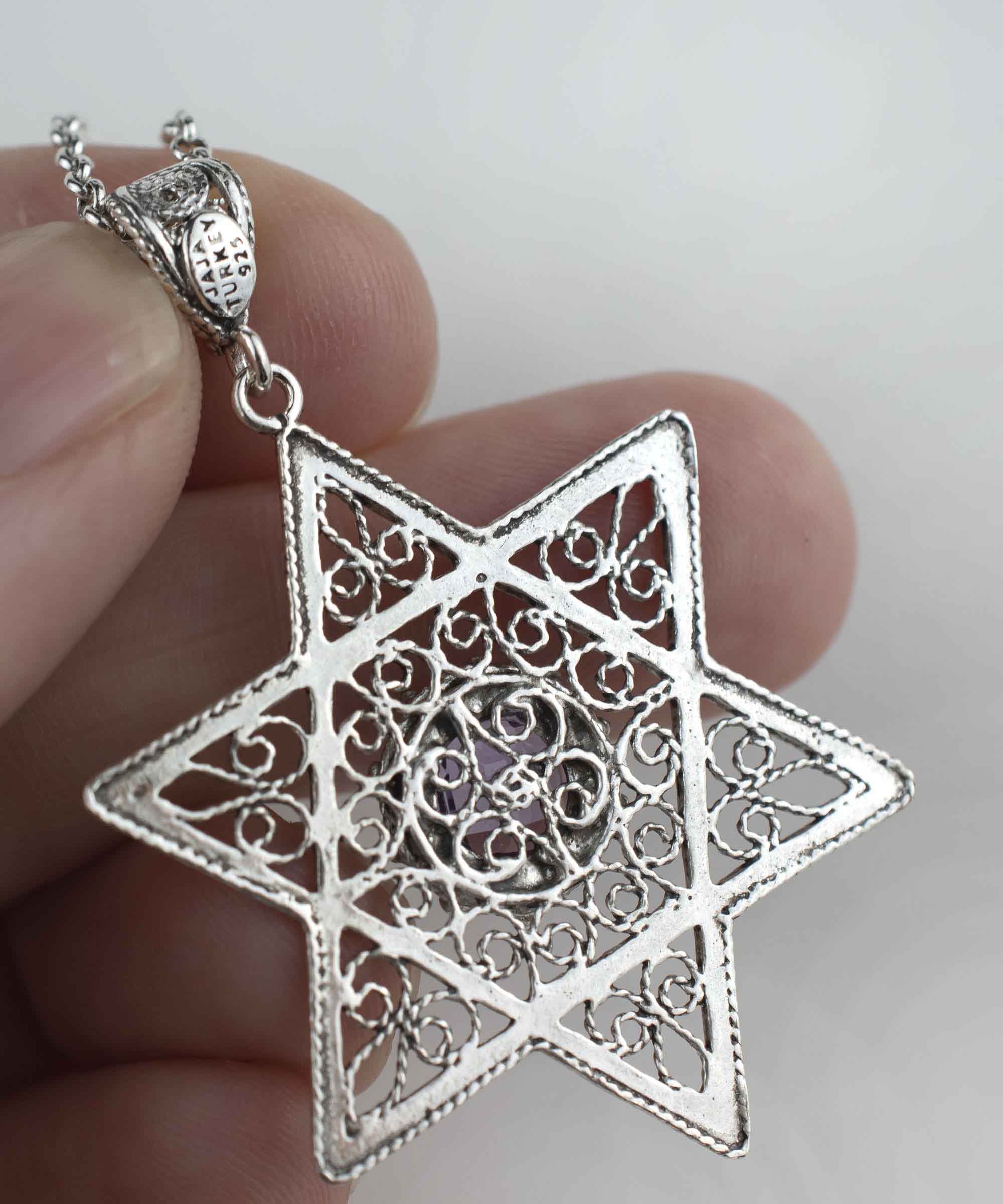 Choosing the Filigree Art Amethyst Gemstone Star of David Women Silver Pendant means investing in a piece of jewelry that is not only beautiful but also meaningful. The combination of high-quality materials, expert craftsmanship, and spiritual significance makes this pendant a unique addition to your collection. It is a piece that tells a story and connects you to your heritage, making it a perfect accessory for any occasion.
