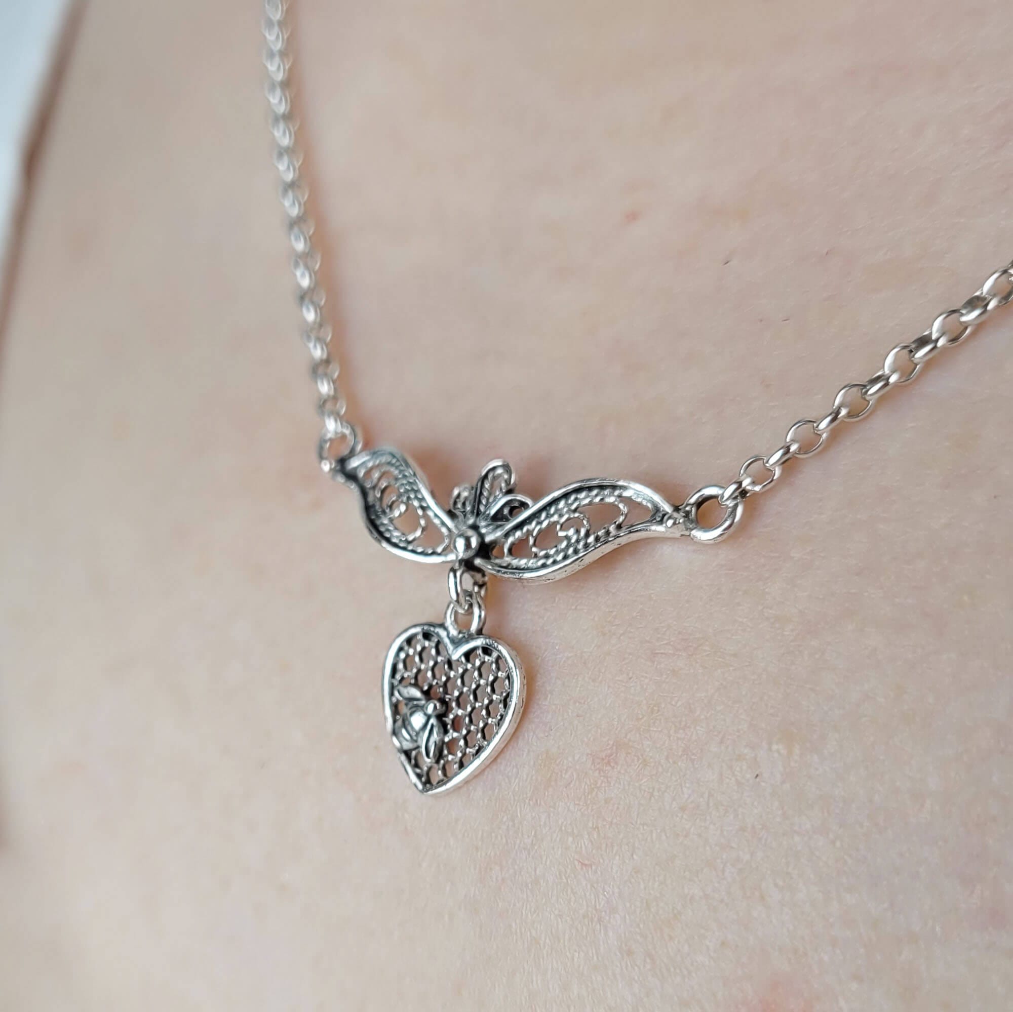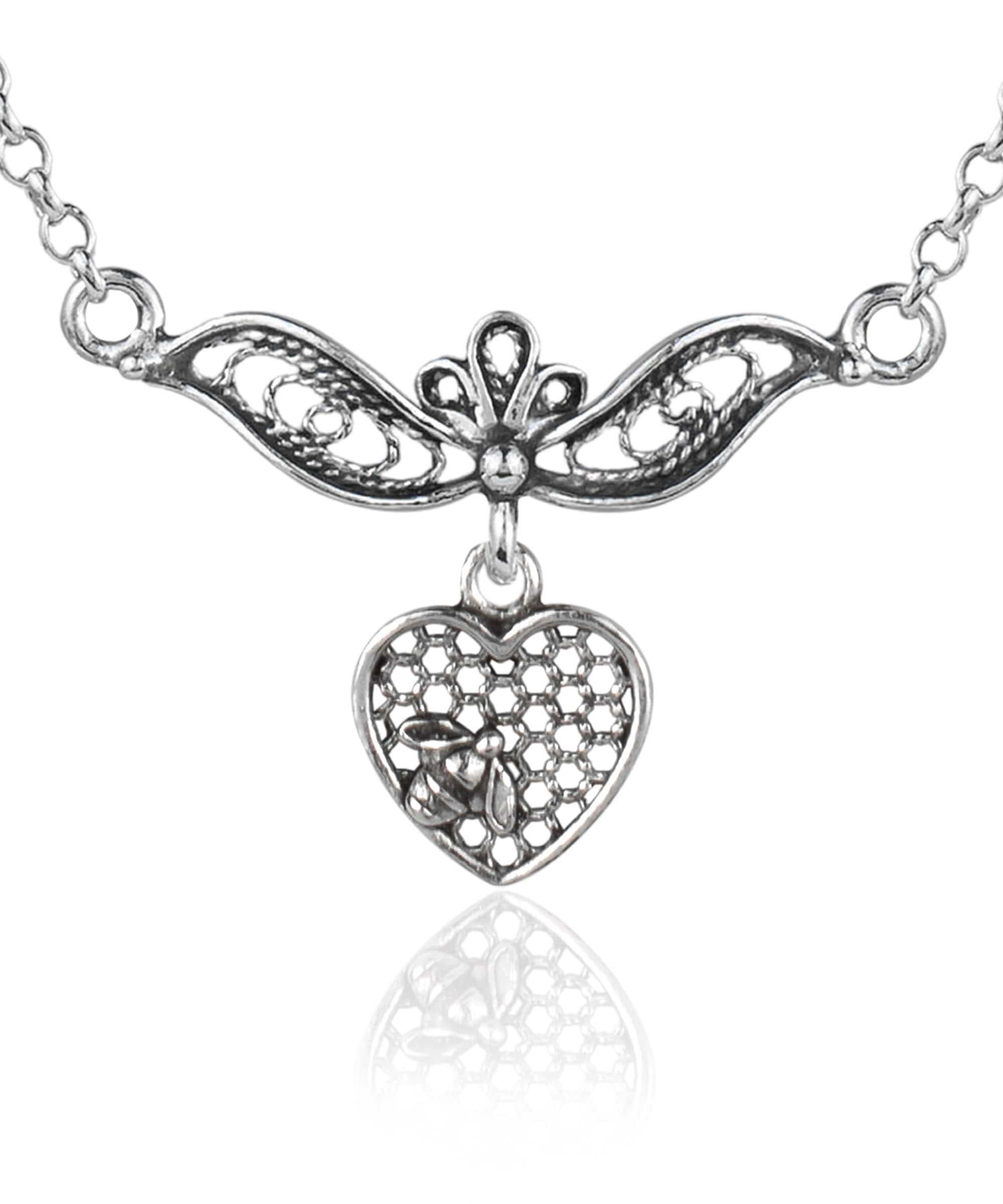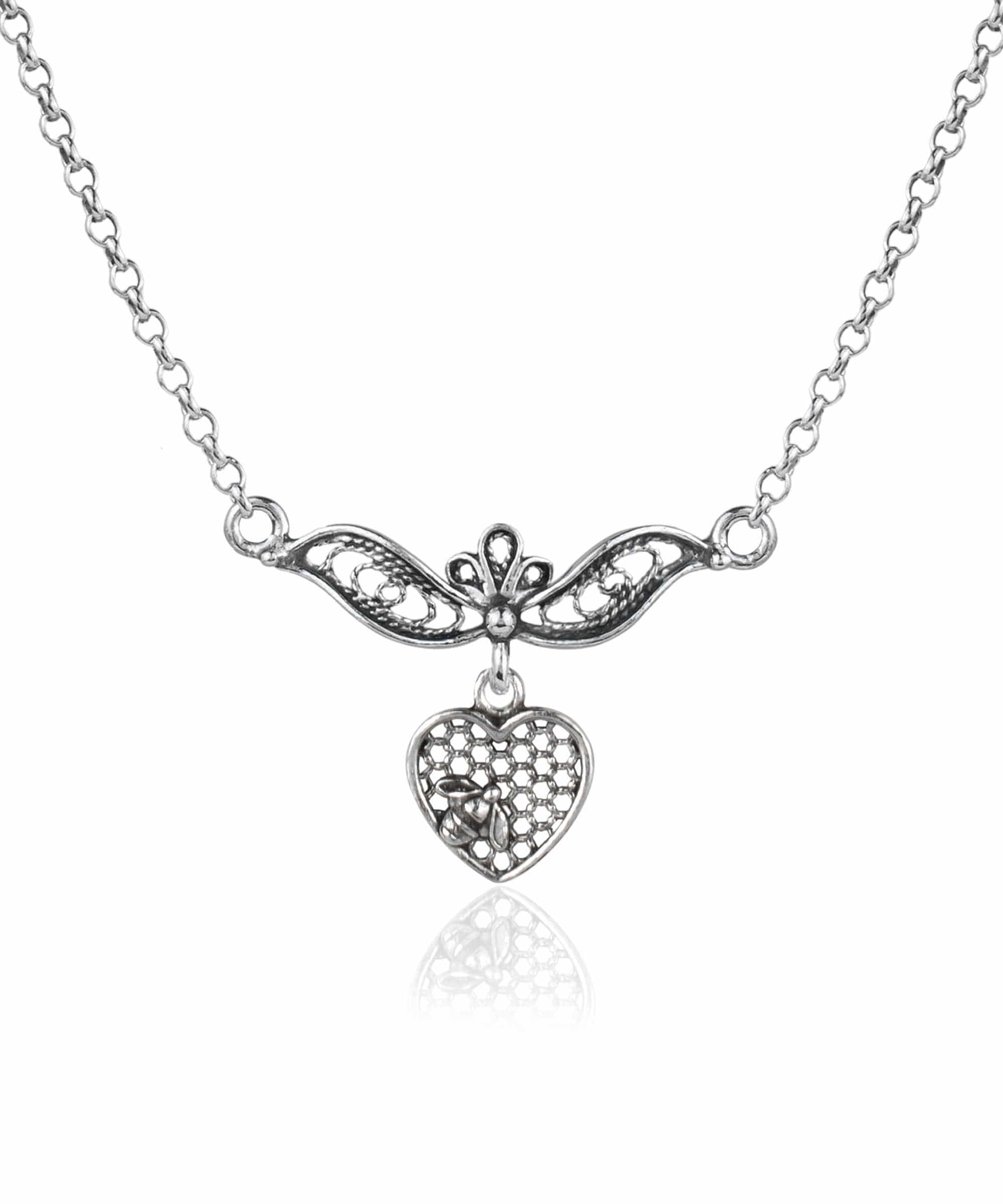 Introducing the exquisite Filigree Art Bee On The Heart Women Silver Choker Necklace, a stunning piece of jewelry that beautifully combines artistry and elegance. Crafted from high-quality 925 sterling silver, this choker necklace is designed to make a statement while offering a touch of sophistication to any outfit.