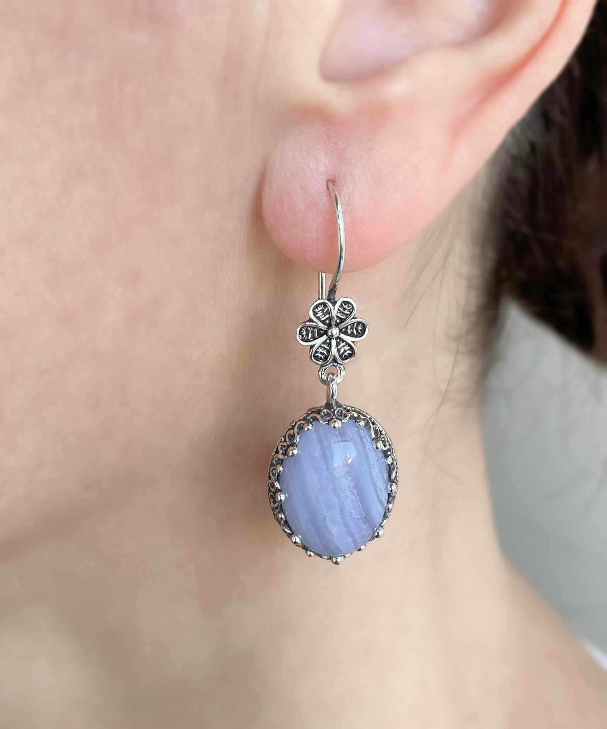 These earrings are not only a beautiful accessory but also a versatile one. They can be paired with various outfits, from casual wear to elegant evening dresses. The stunning blue lace agate gemstone complements a wide range of colors, making it easy to incorporate these earrings into your wardrobe. Whether you're attending a wedding, a dinner party, or simply going out with friends, these earrings will elevate your look and make you feel confident.