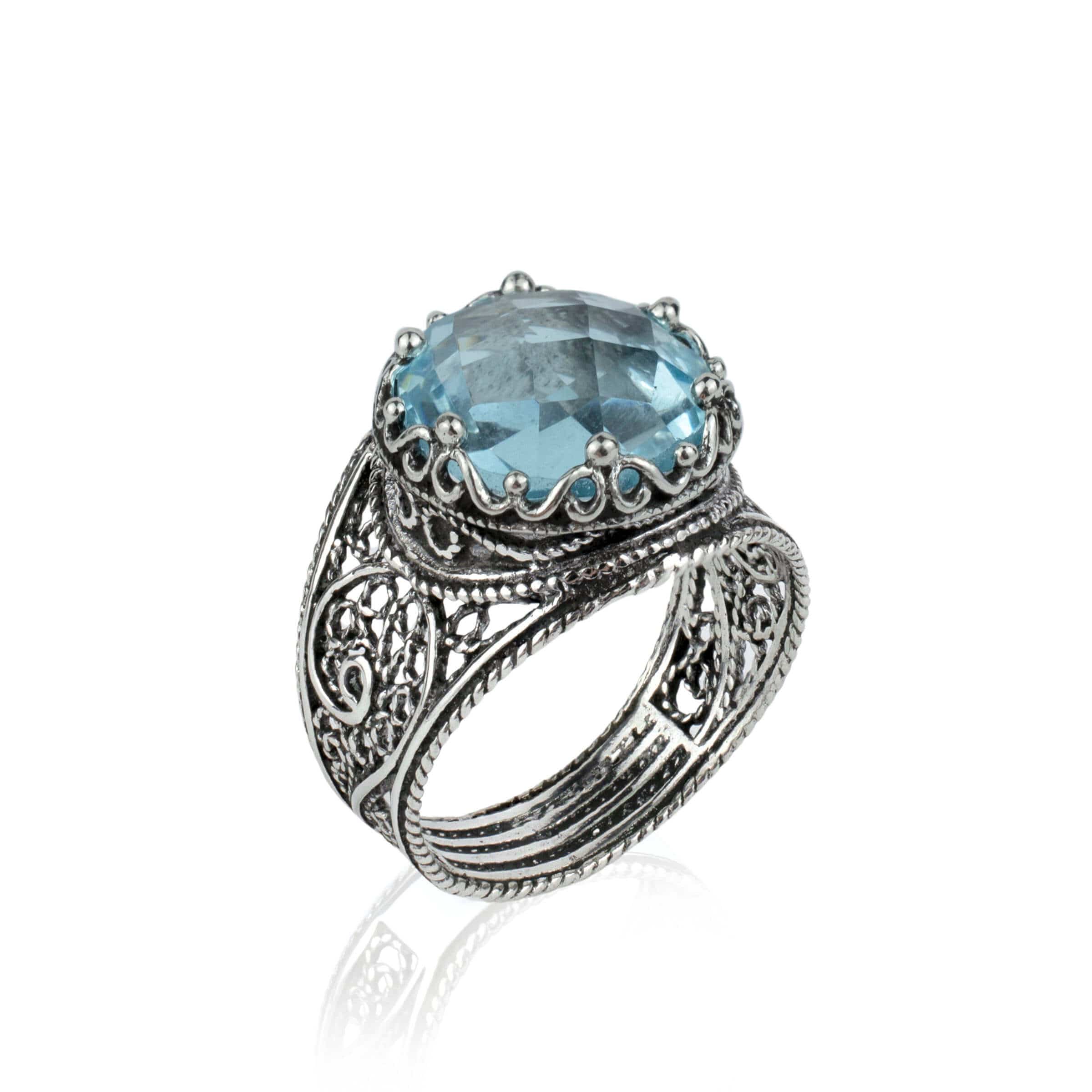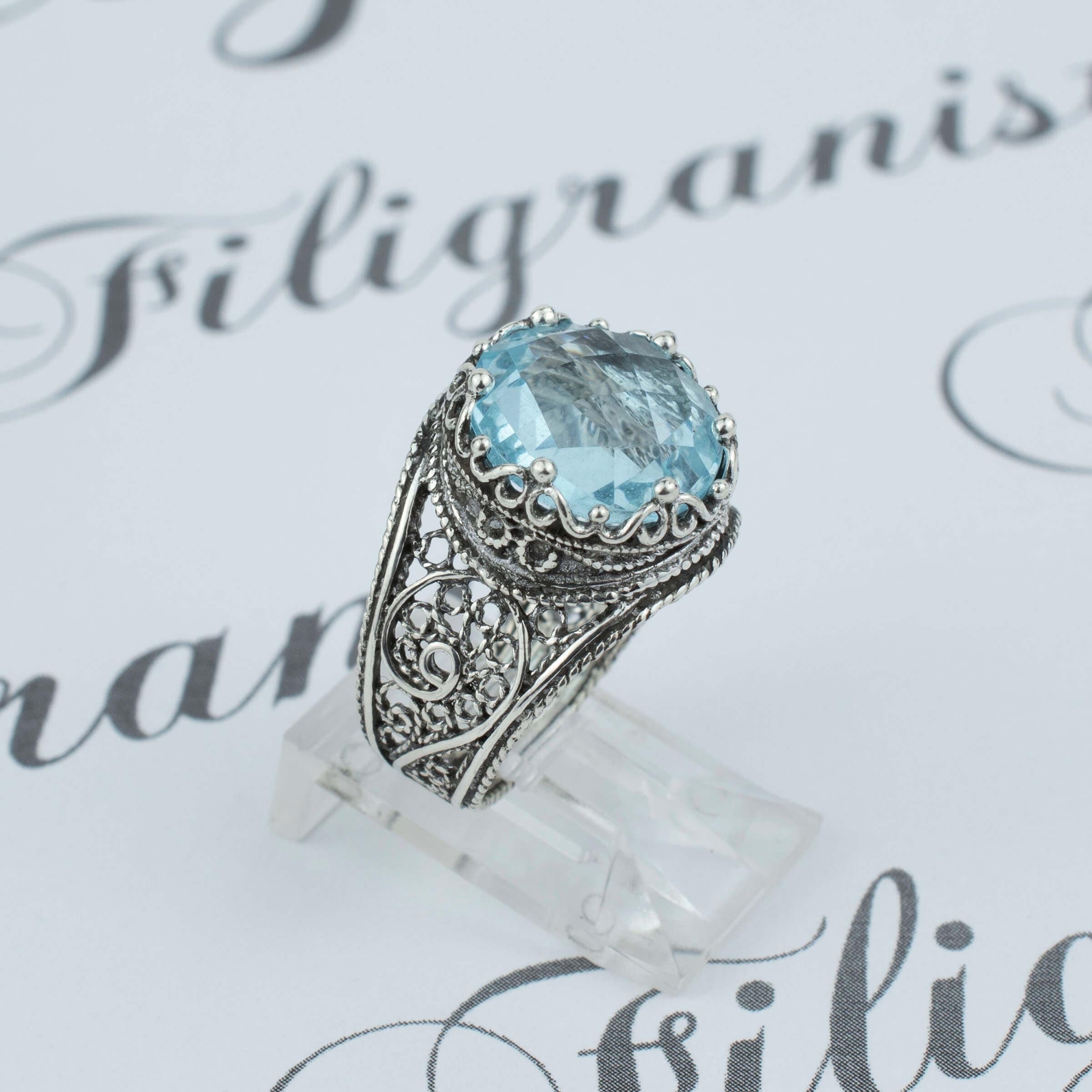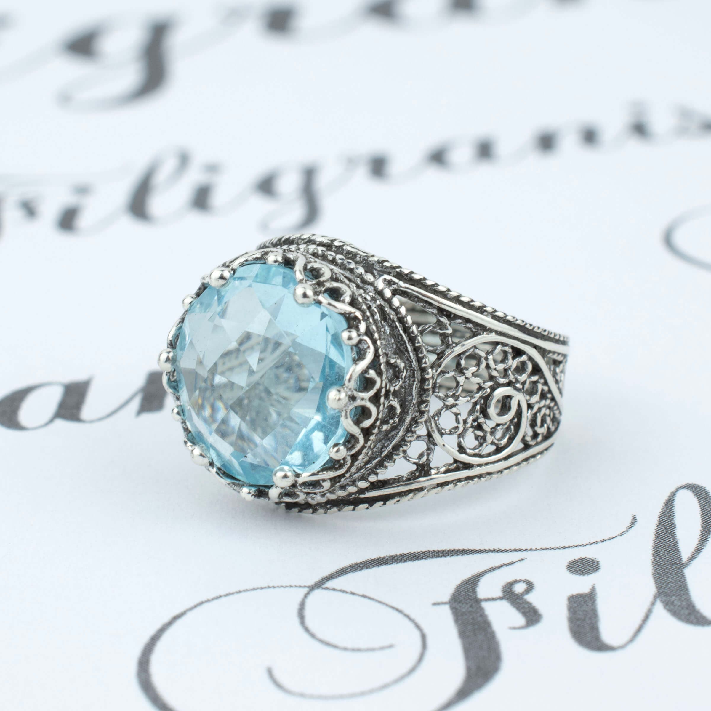In summary, the Handmade Filigree Art Sky Blue Topaz Gemstone Crown Design Women Sterling Silver Cocktail Ring is more than just a piece of jewelry; it is a work of art that embodies elegance, sophistication, and quality craftsmanship. Whether you are treating yourself or looking for the perfect gift, this ring is sure to impress and delight.