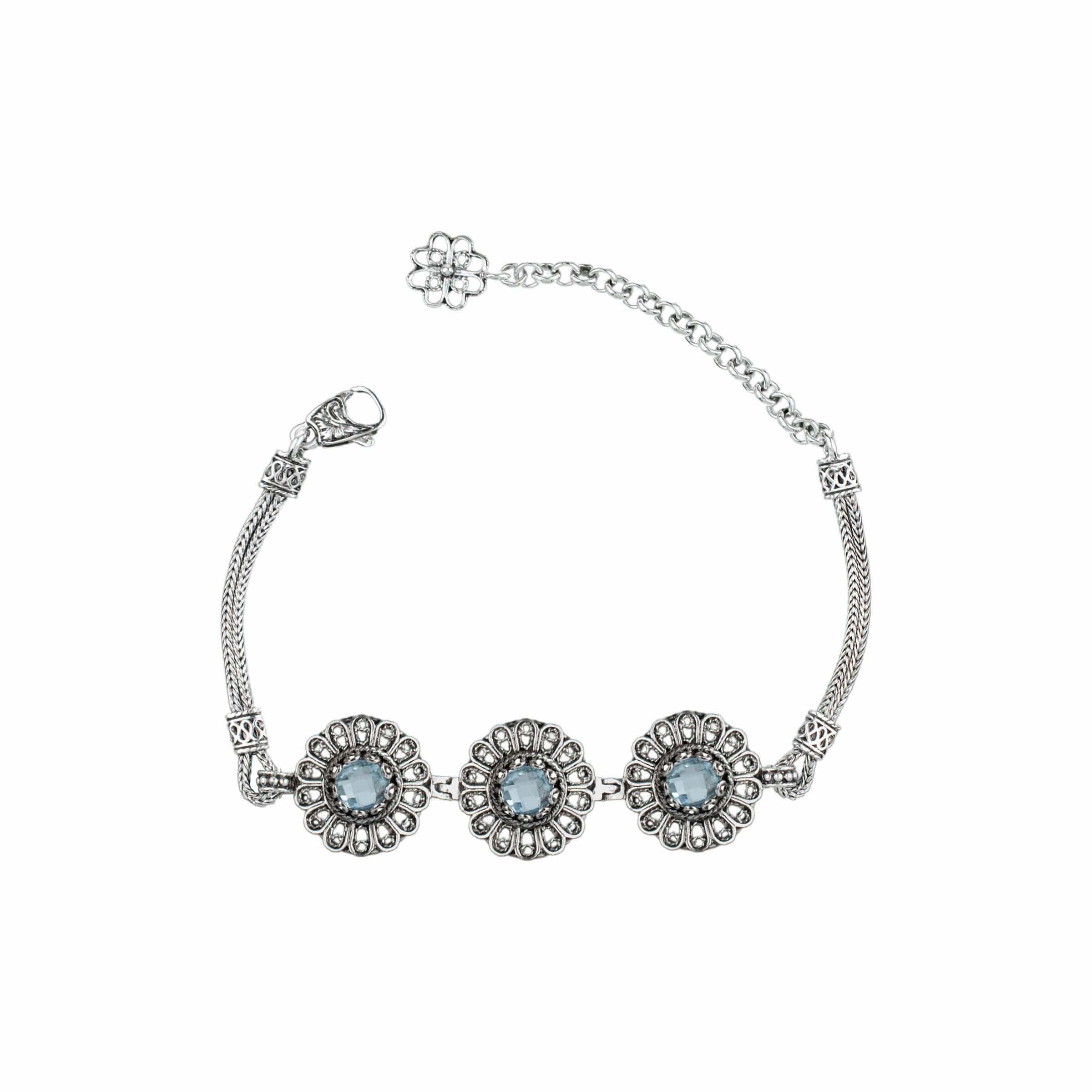 Introducing the exquisite Filigree Art Blue Topaz Gemstone Women Silver Link Bracelet, a stunning piece of jewelry that combines elegance and artistry. Crafted from high-quality sterling silver, this bracelet features a beautiful filigree design that showcases the intricate craftsmanship involved in its creation. The centerpiece of this bracelet is the captivating sky blue topaz gemstone, which is double side faceted in a rose cut, adding a touch of brilliance and sophistication to your wrist.