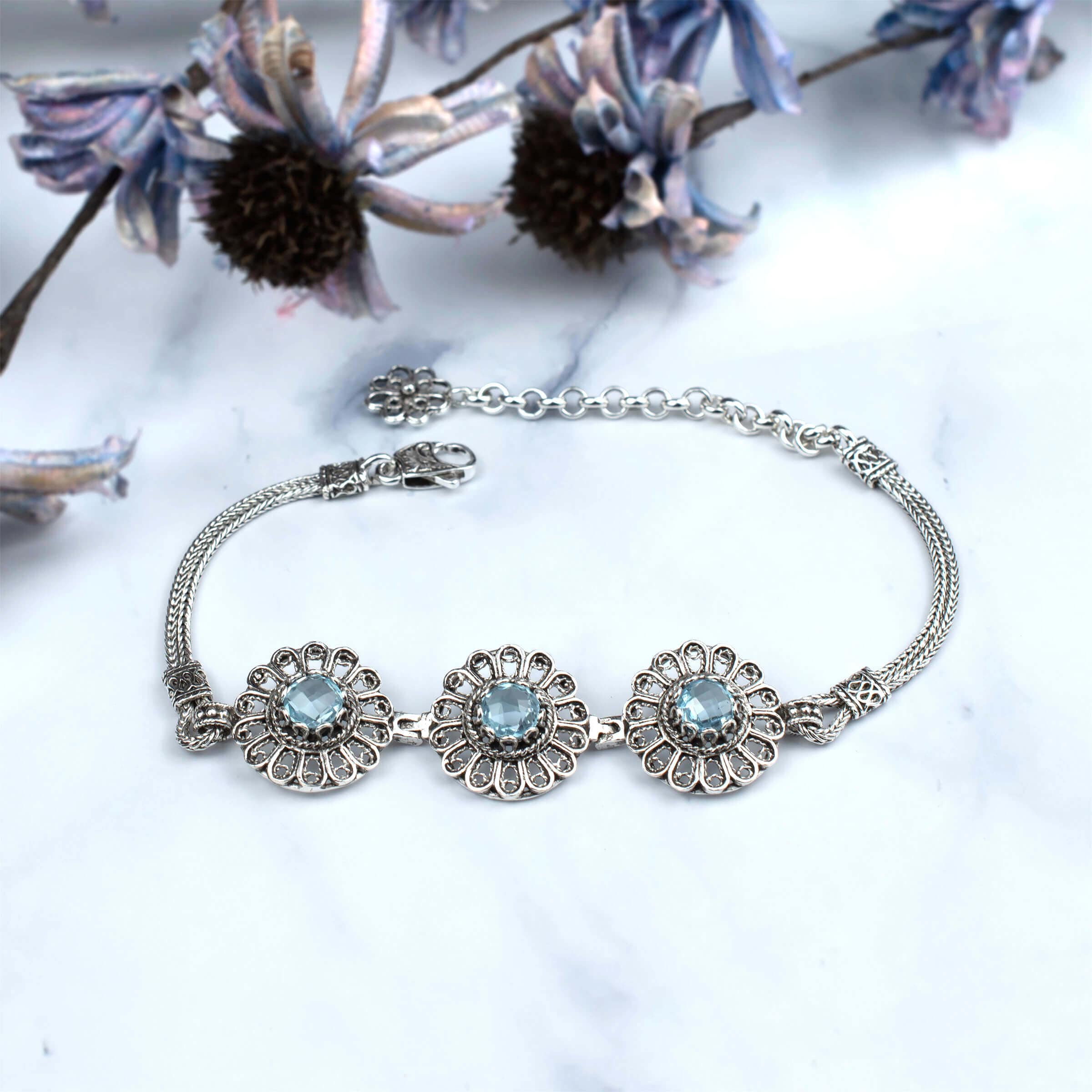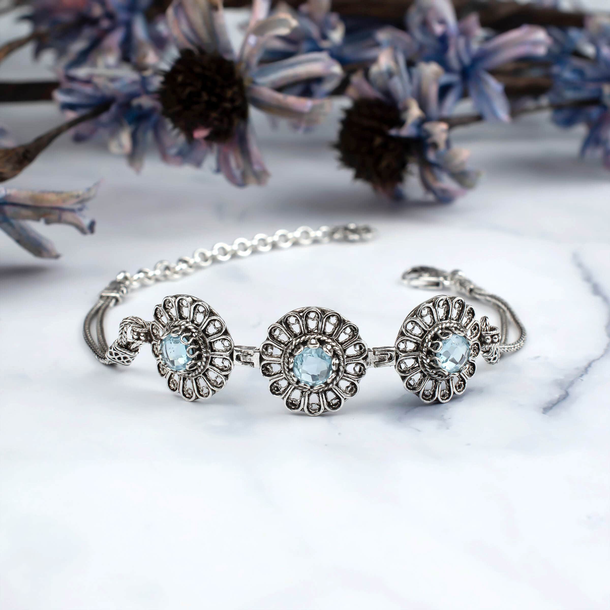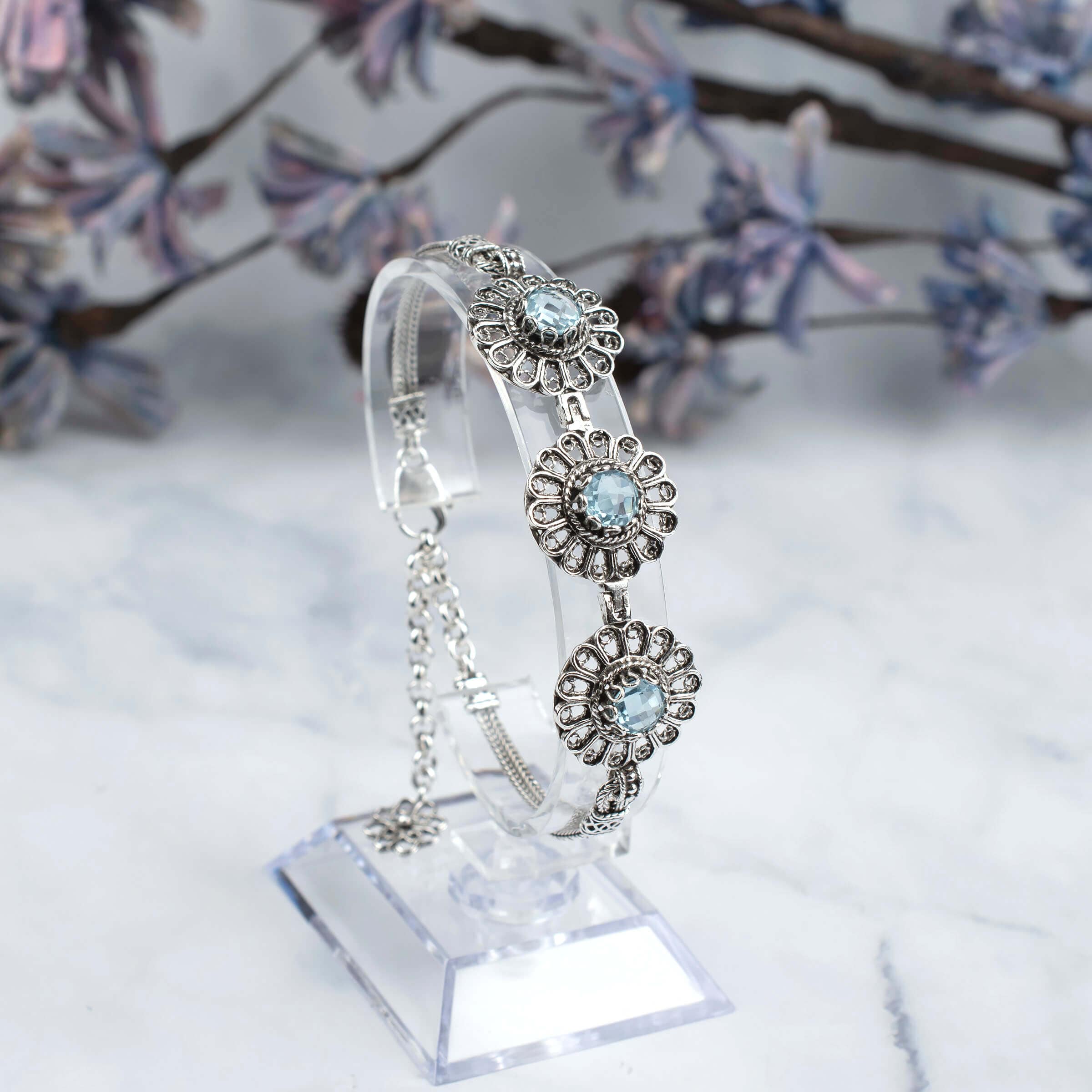 The Filigree Art Blue Topaz Gemstone Women Silver Link Bracelet is versatile enough to be worn on various occasions. Whether you're dressing up for a formal event or adding a touch of elegance to your everyday outfit, this bracelet is sure to complement your style. Its unique design and stunning gemstone make it a conversation starter, allowing you to showcase your exquisite taste in jewelry.