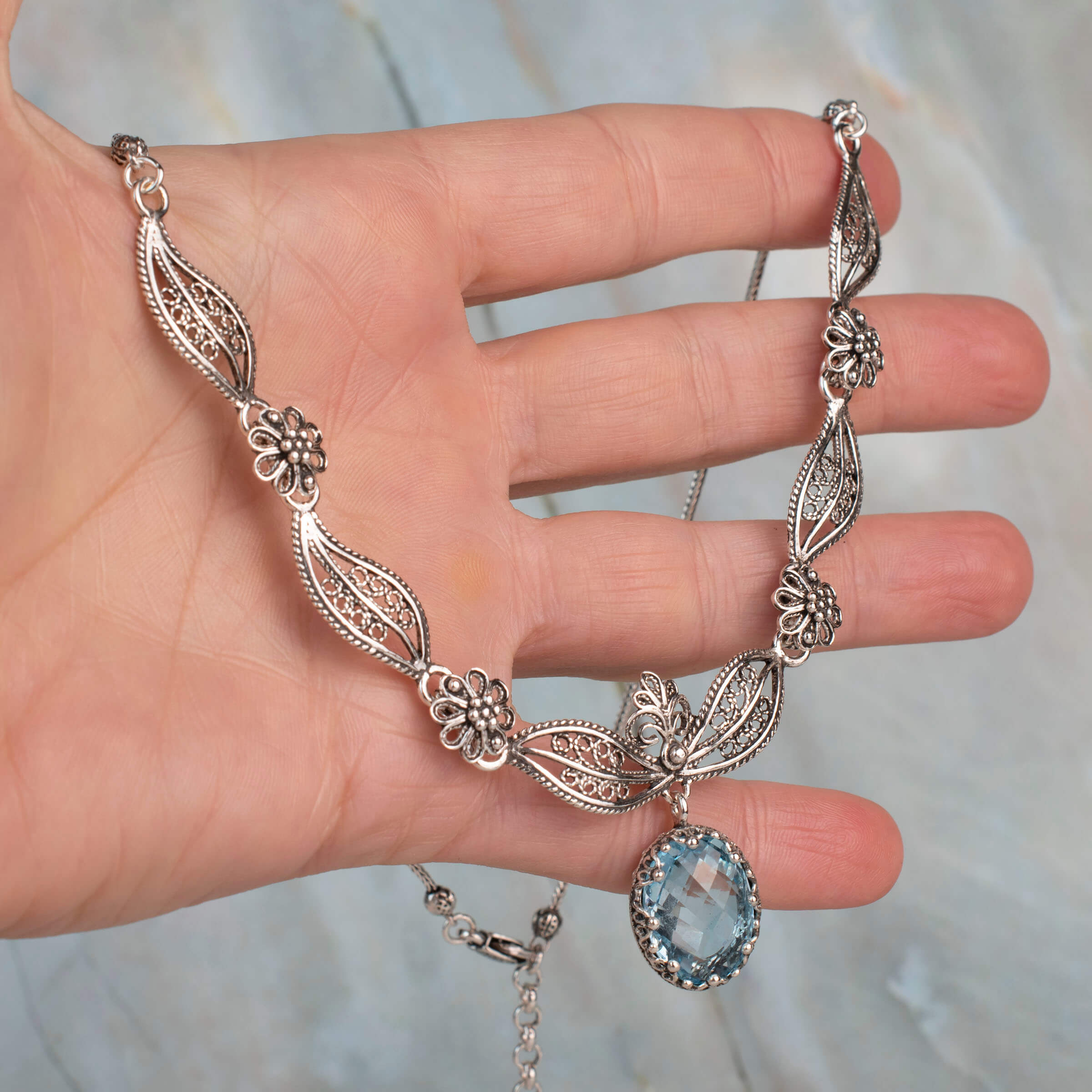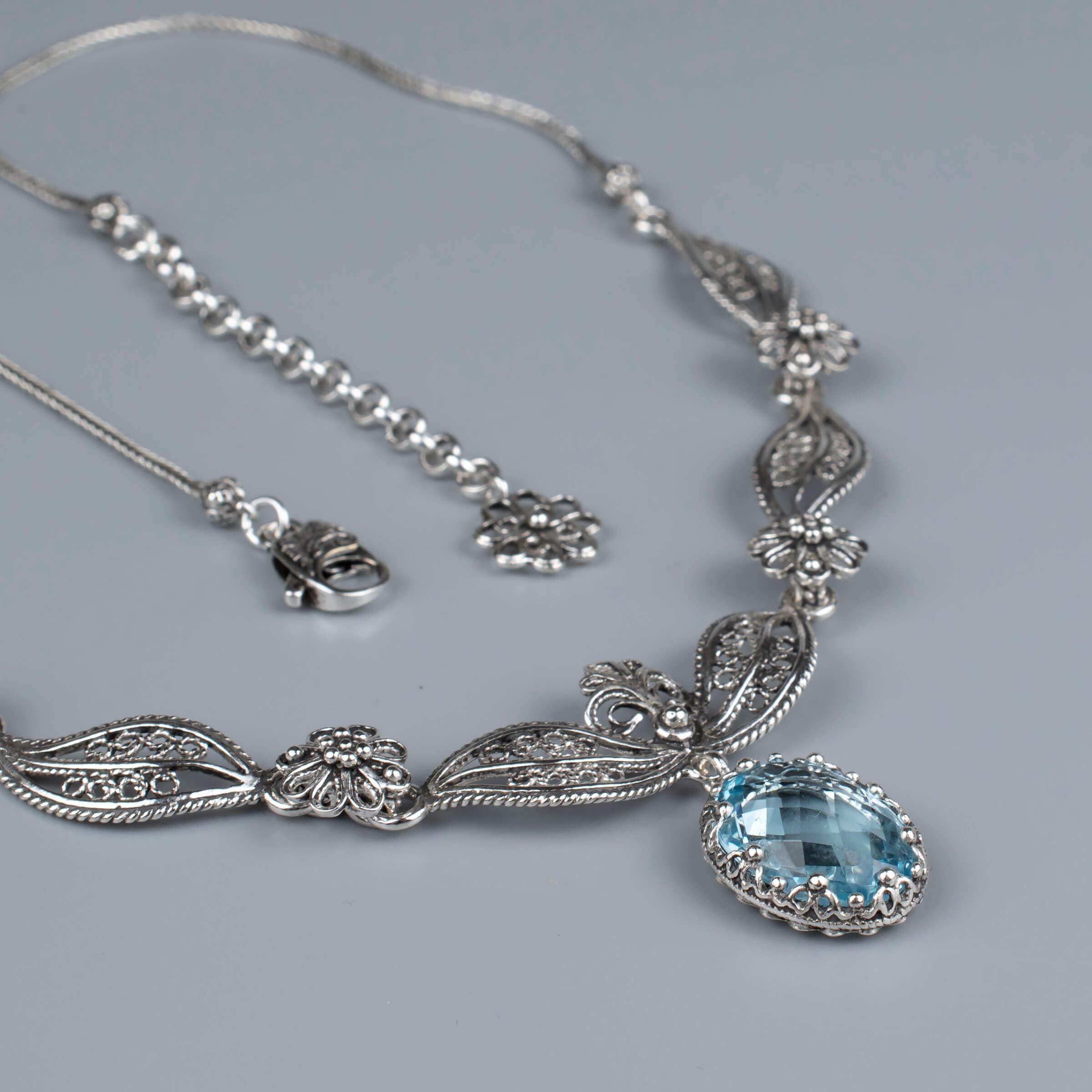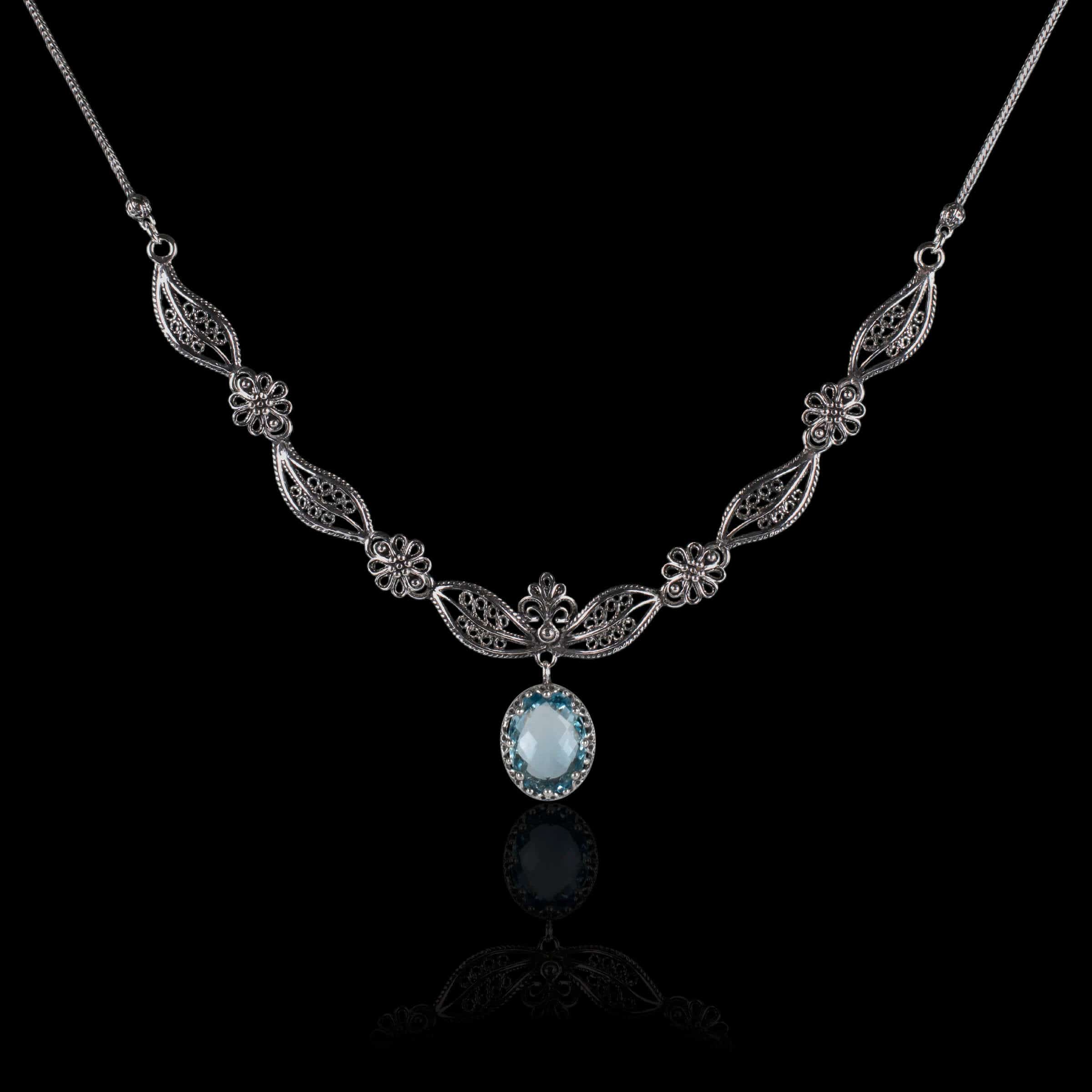 Choosing the Filigree Art Blue Topaz Gemstone Necklace means investing in a piece that embodies quality, artistry, and timeless beauty. Each necklace is crafted with attention to detail, ensuring that you receive a product that meets the highest standards. The combination of sterling silver and genuine gemstones makes this necklace a durable and stylish addition to your jewelry collection.