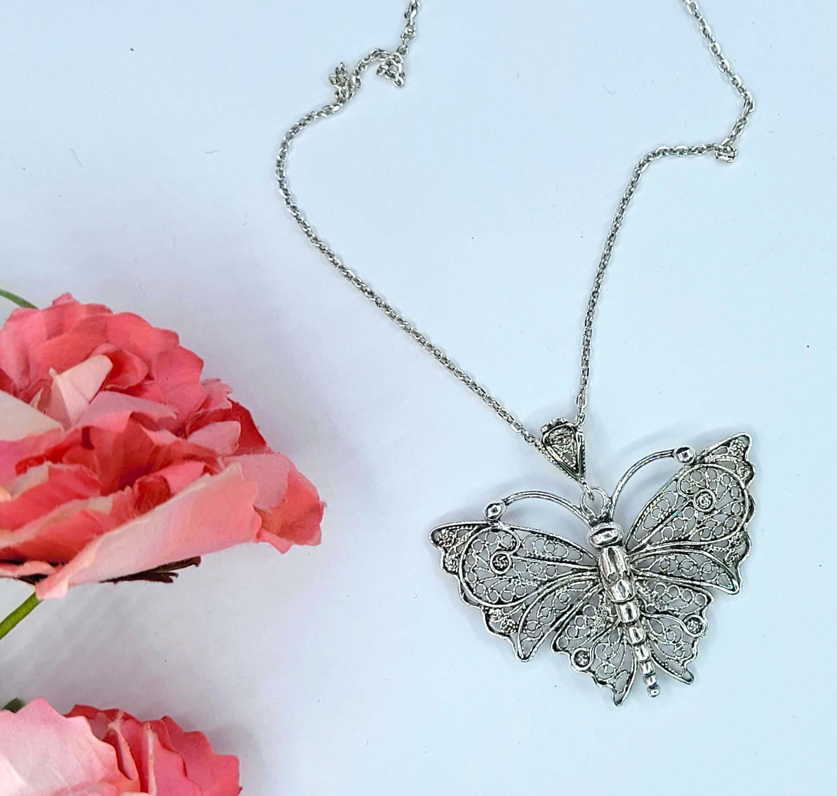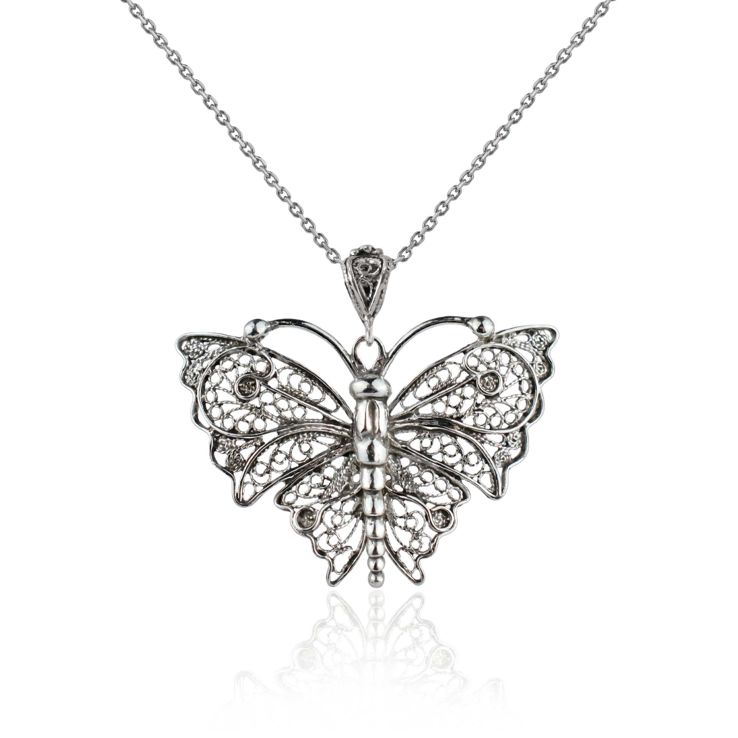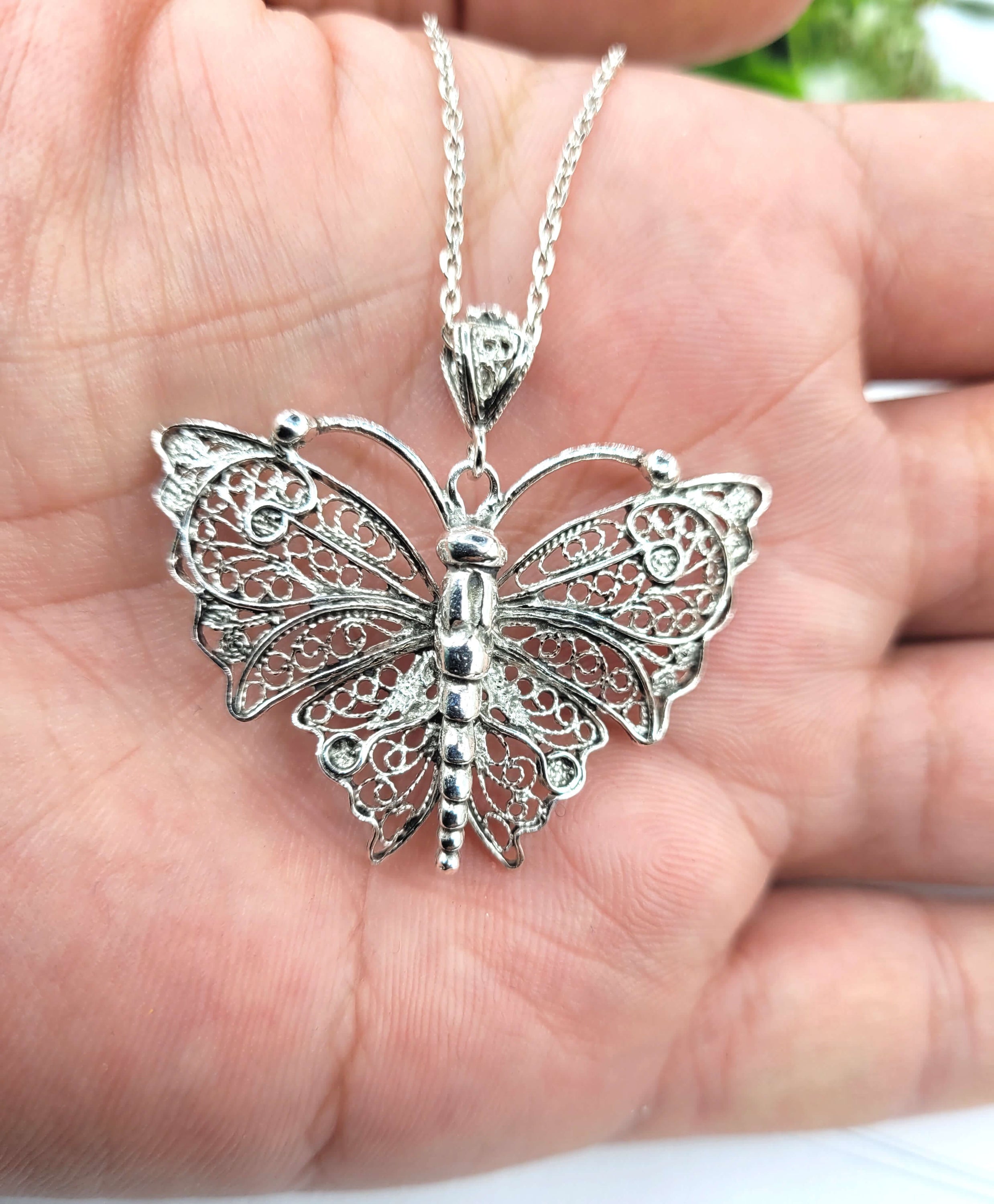 The filigree technique, which dates back to ancient Mesopotamia and Anatolia, involves twisting and curling fine metal strands to create intricate patterns. This necklace is a testament to the craftsmanship that goes into each piece, ensuring that you wear a work of art around your neck. The butterfly symbolizes transformation and beauty, making this pendant not only a fashion statement but also a meaningful piece of jewelry.