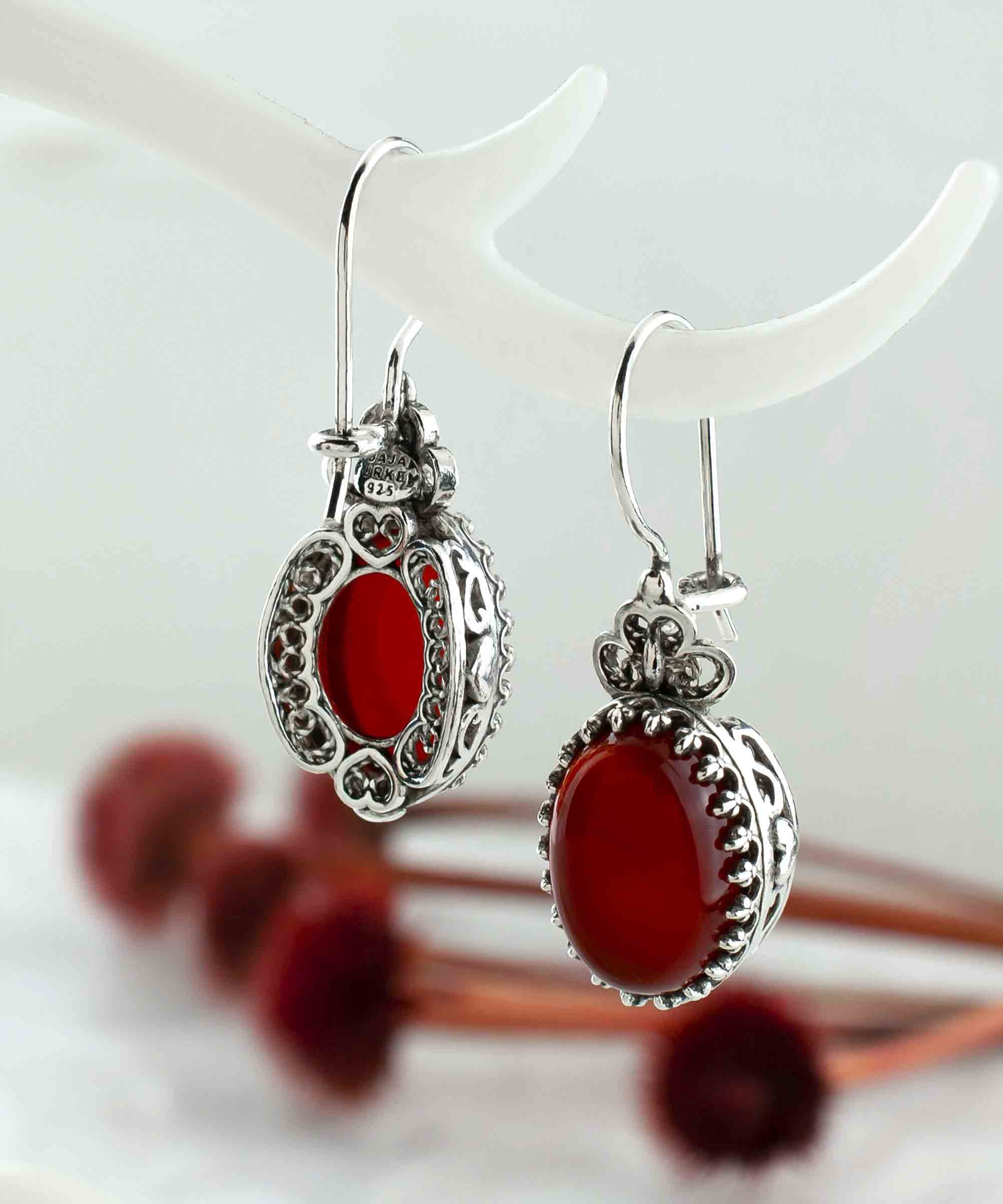 Don't miss out on the opportunity to own these beautiful earrings. Add the Filigree Art Carnelian Gemstone Heart Detailed Women Silver Oval Drop Earrings to your jewelry collection today and experience the elegance and charm they bring to your style.