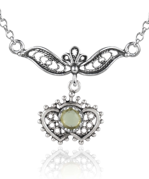 Introducing the exquisite Filigree Art Citrine / Blue Quartz Heart to Heart Design Women Silver Necklace, a stunning piece that combines elegance and artistry. This necklace is crafted from high-quality sterling silver, ensuring durability and a beautiful shine that will last for years. The heart-to-heart design symbolizes love and connection, making it a perfect gift for someone special or a delightful treat for yourself.