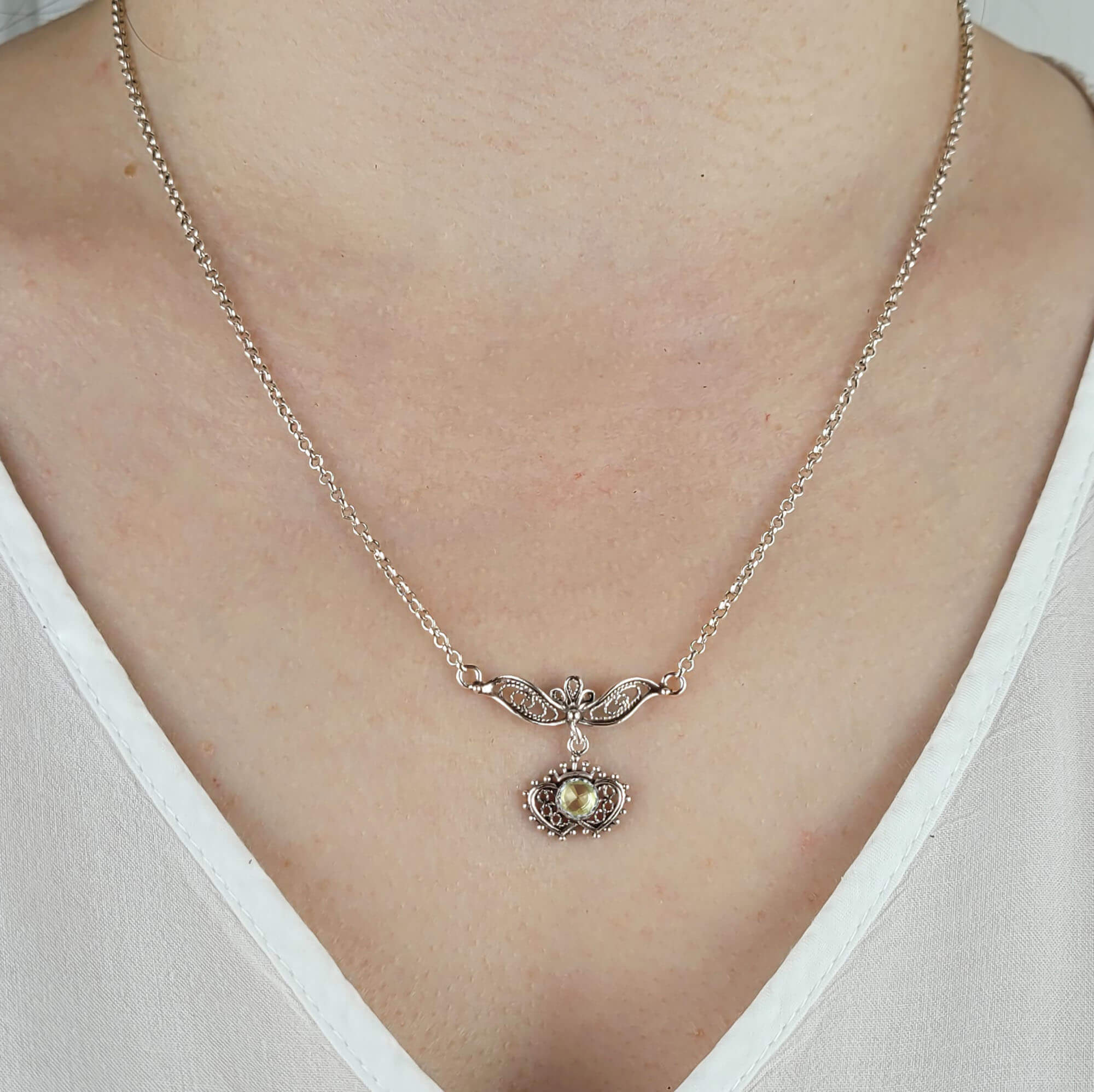 One of the standout features of this necklace is its intricate filigree design. Filigree is a delicate metalwork technique that involves twisting and curling fine strands of metal to create intricate patterns. This art form has its roots in ancient civilizations, particularly in Mesopotamia and Anatolia, and has been cherished for centuries. The combination of old-world craftsmanship and modern design makes this necklace a unique piece that stands out in any jewelry collection.