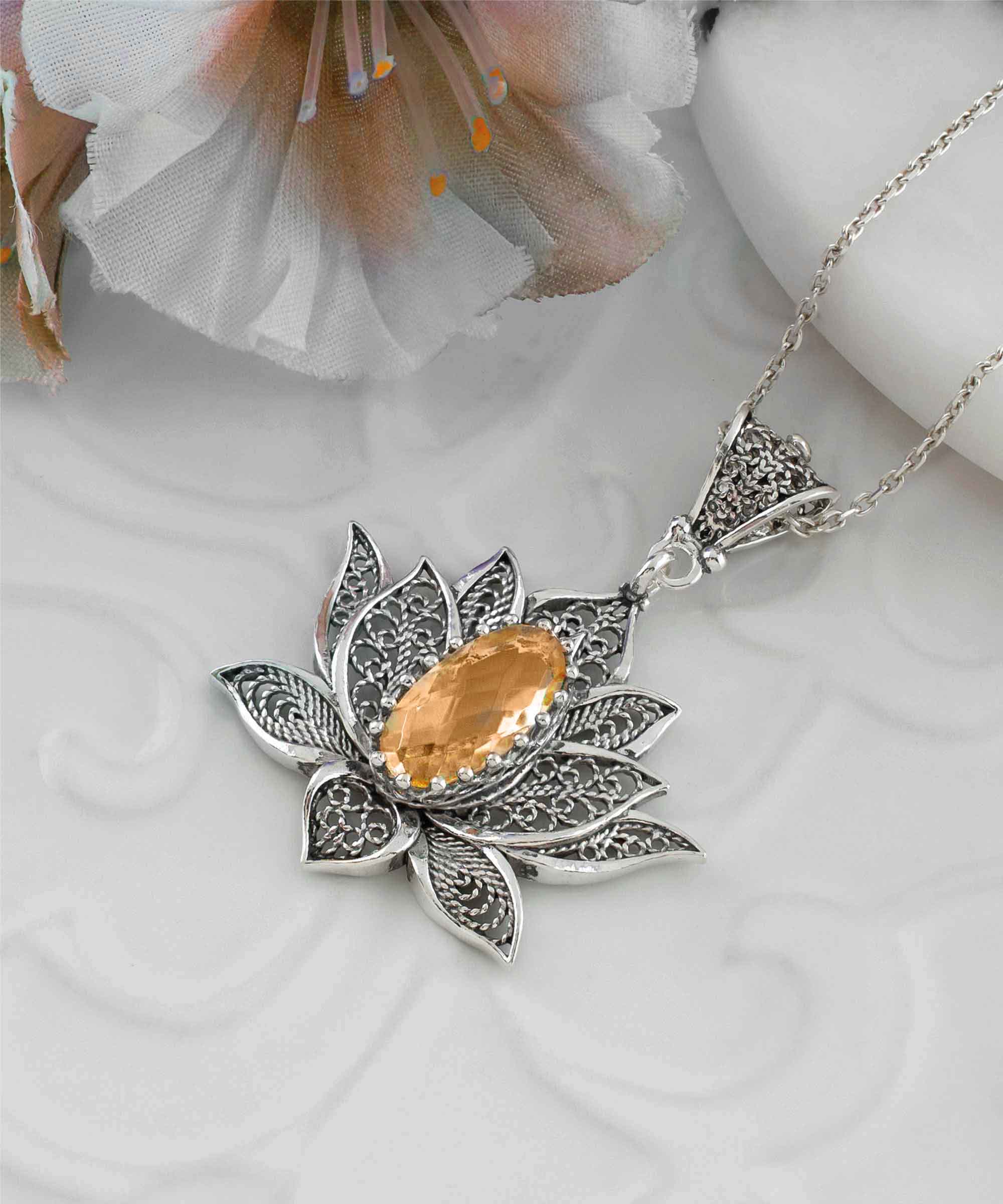 Our Filigree Art Citrine Gemstone Blossoming Lotus Flower Women Silver Pendant Necklace is more than just a piece of jewelry; it is a statement of style and sophistication. The combination of high-quality materials, expert craftsmanship, and meaningful design makes it a must-have for any jewelry collection. Whether you're treating yourself or gifting it to someone special, this necklace is sure to be cherished for years to come.