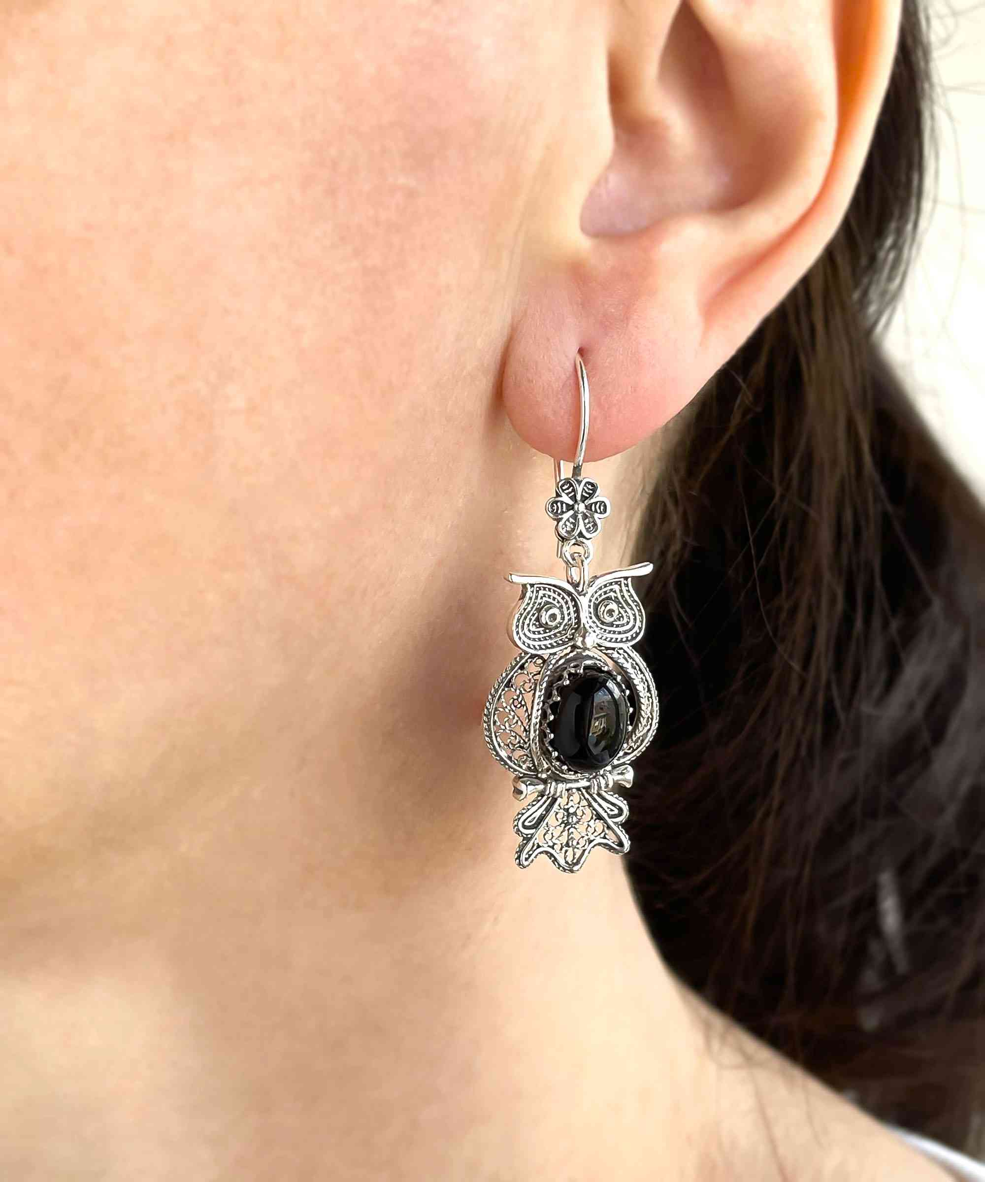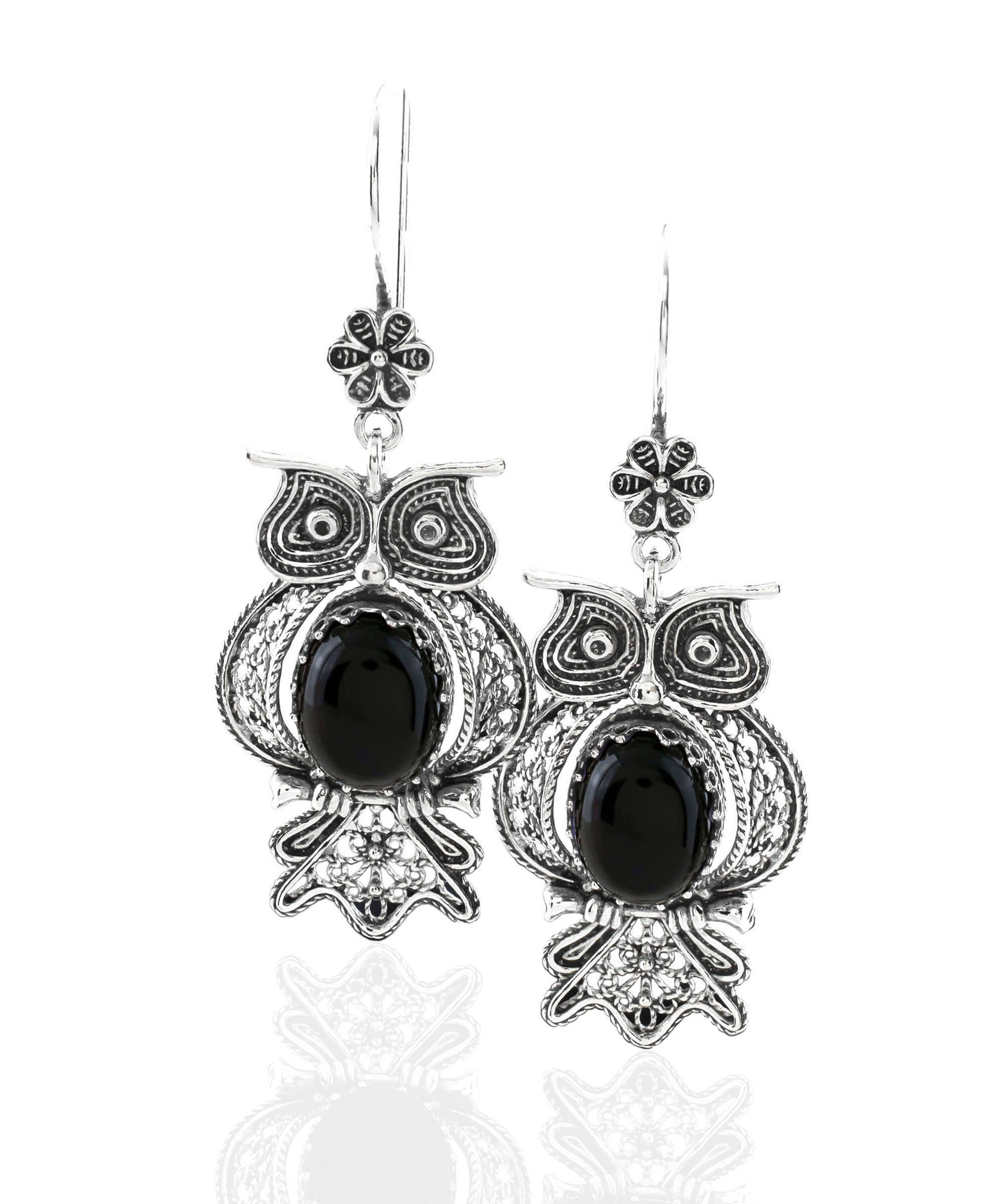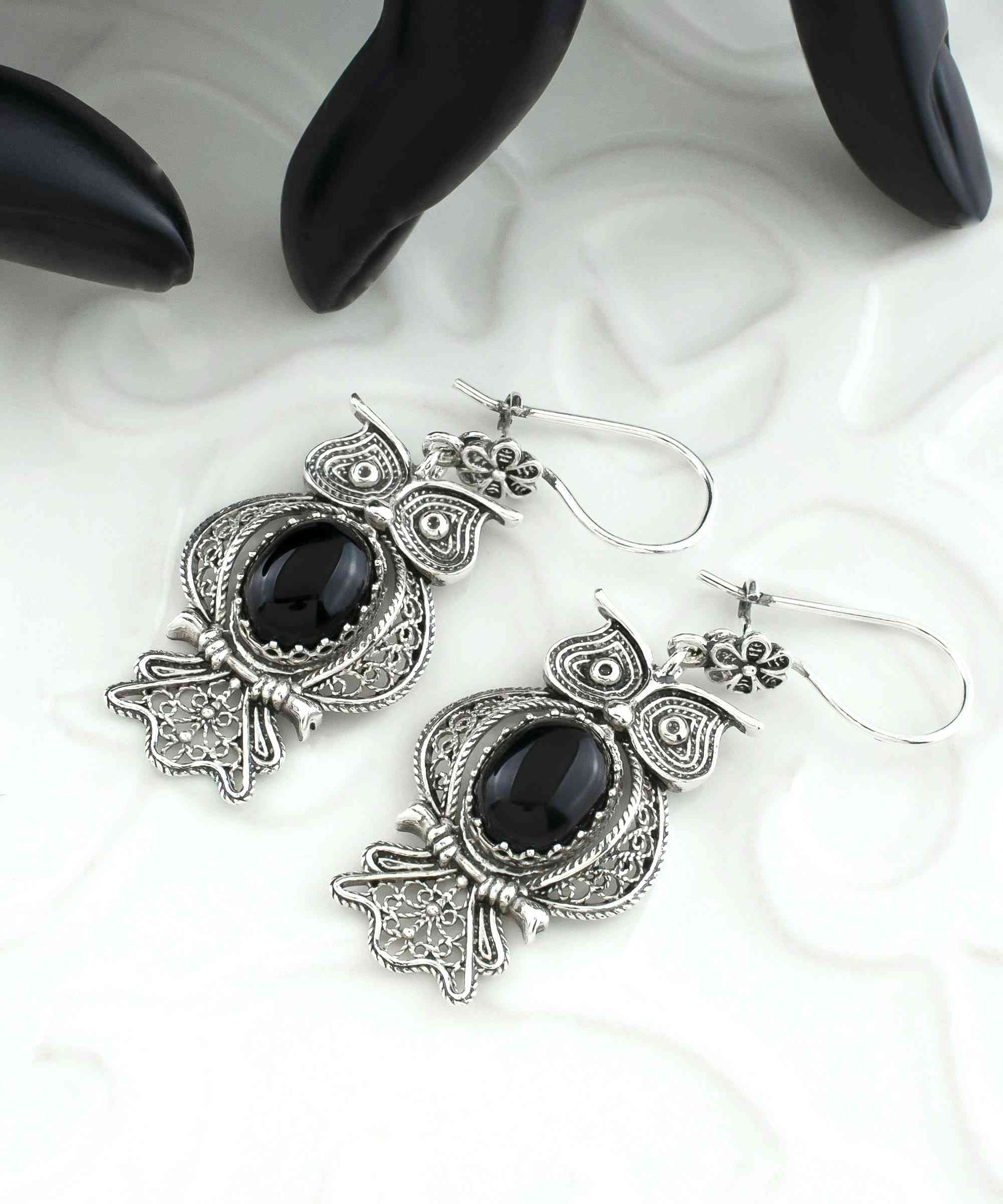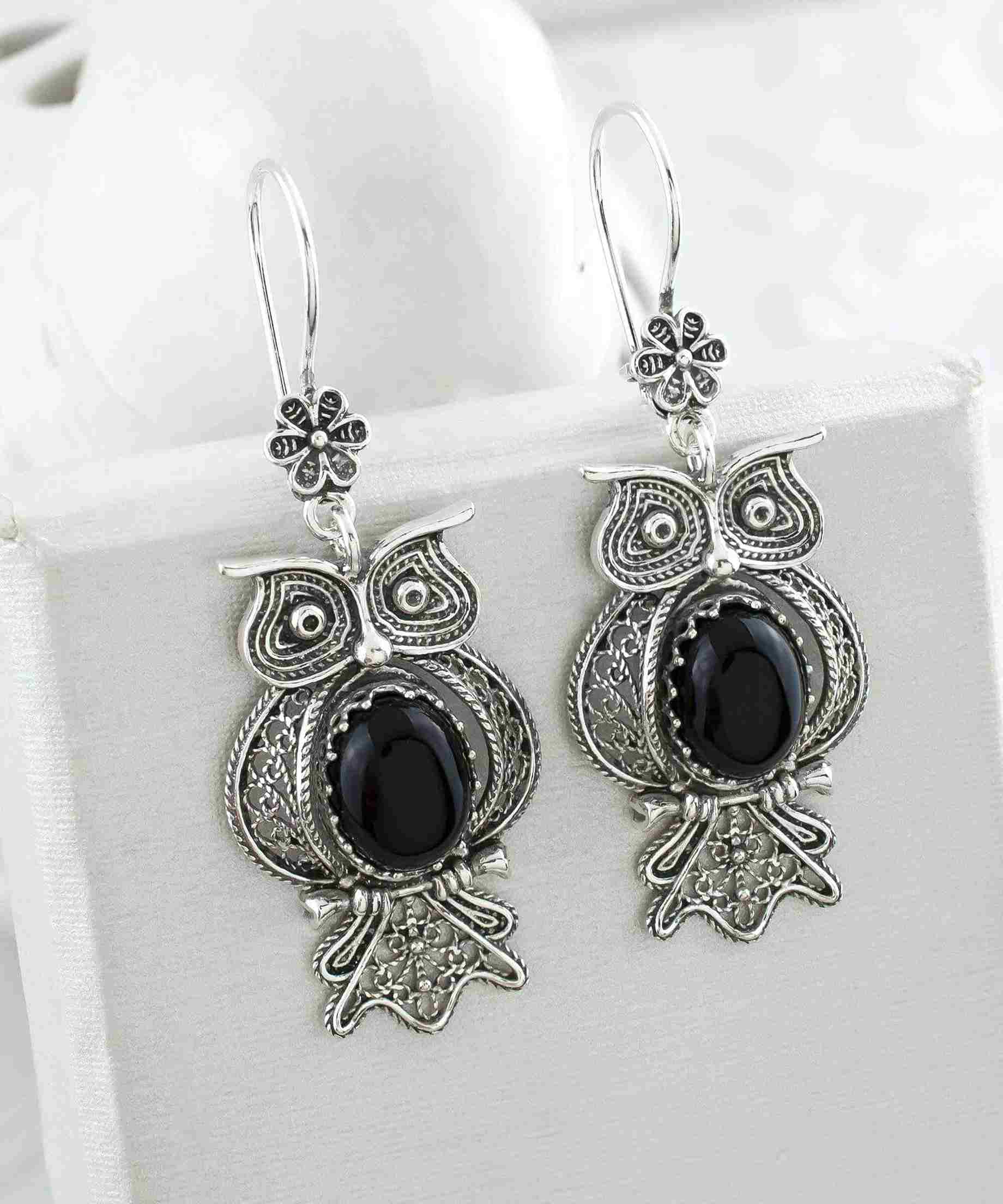 Whether you're treating yourself or looking for the perfect gift, our Filigree Art Owl Figured Black Onyx Gemstone Women Silver Dangle earrings are sure to impress. Experience the blend of traditional craftsmanship and modern design with this exquisite jewelry piece.