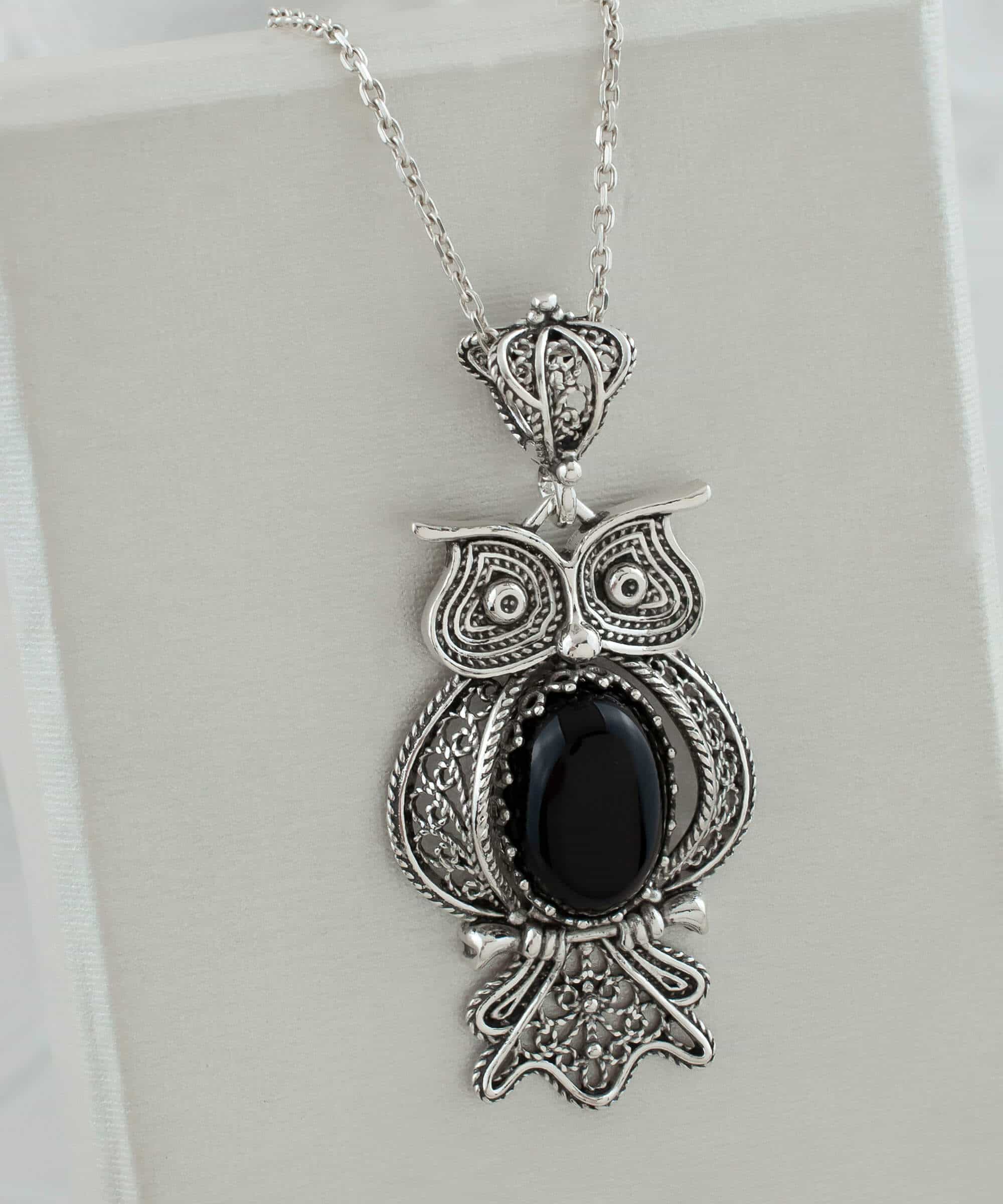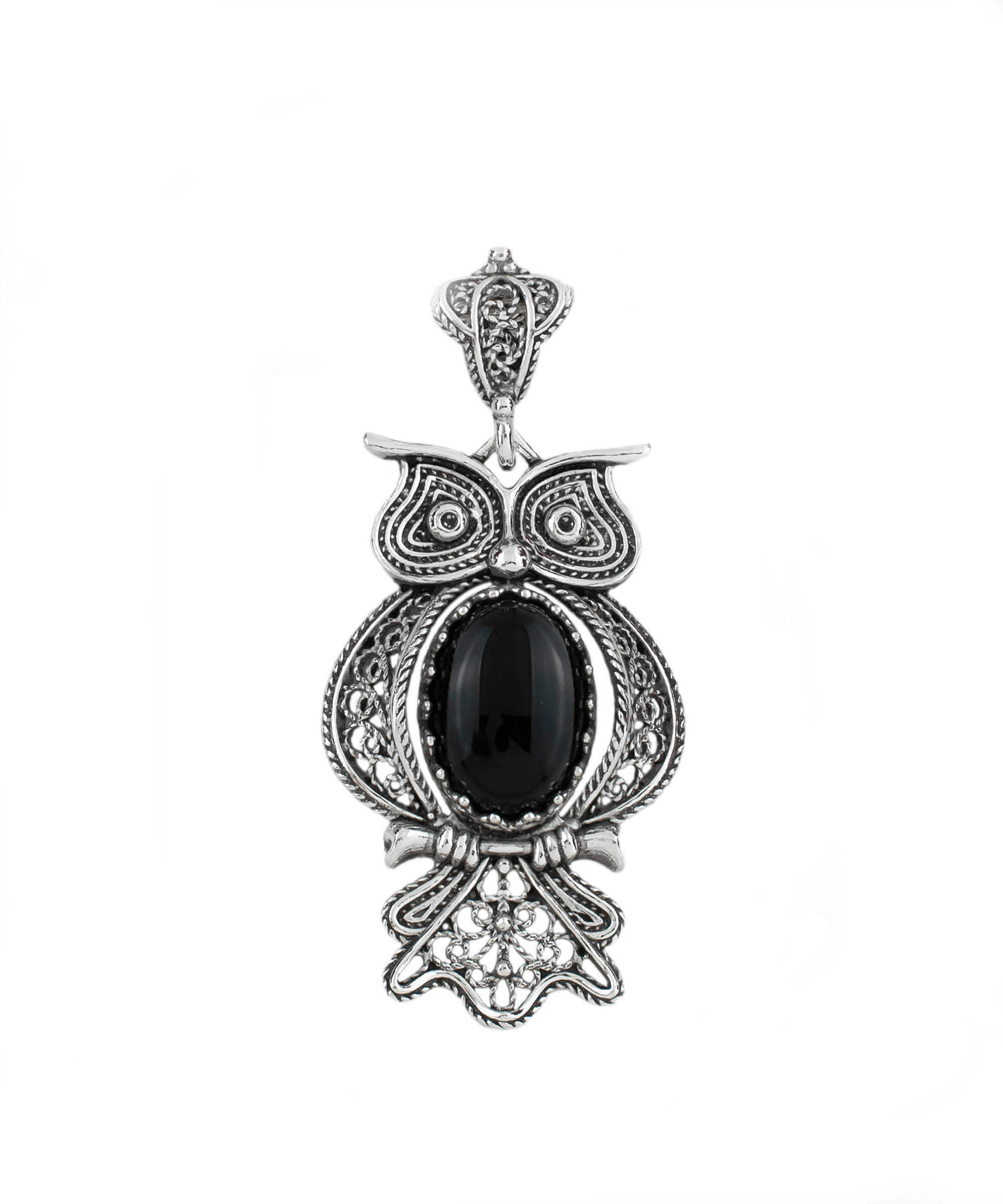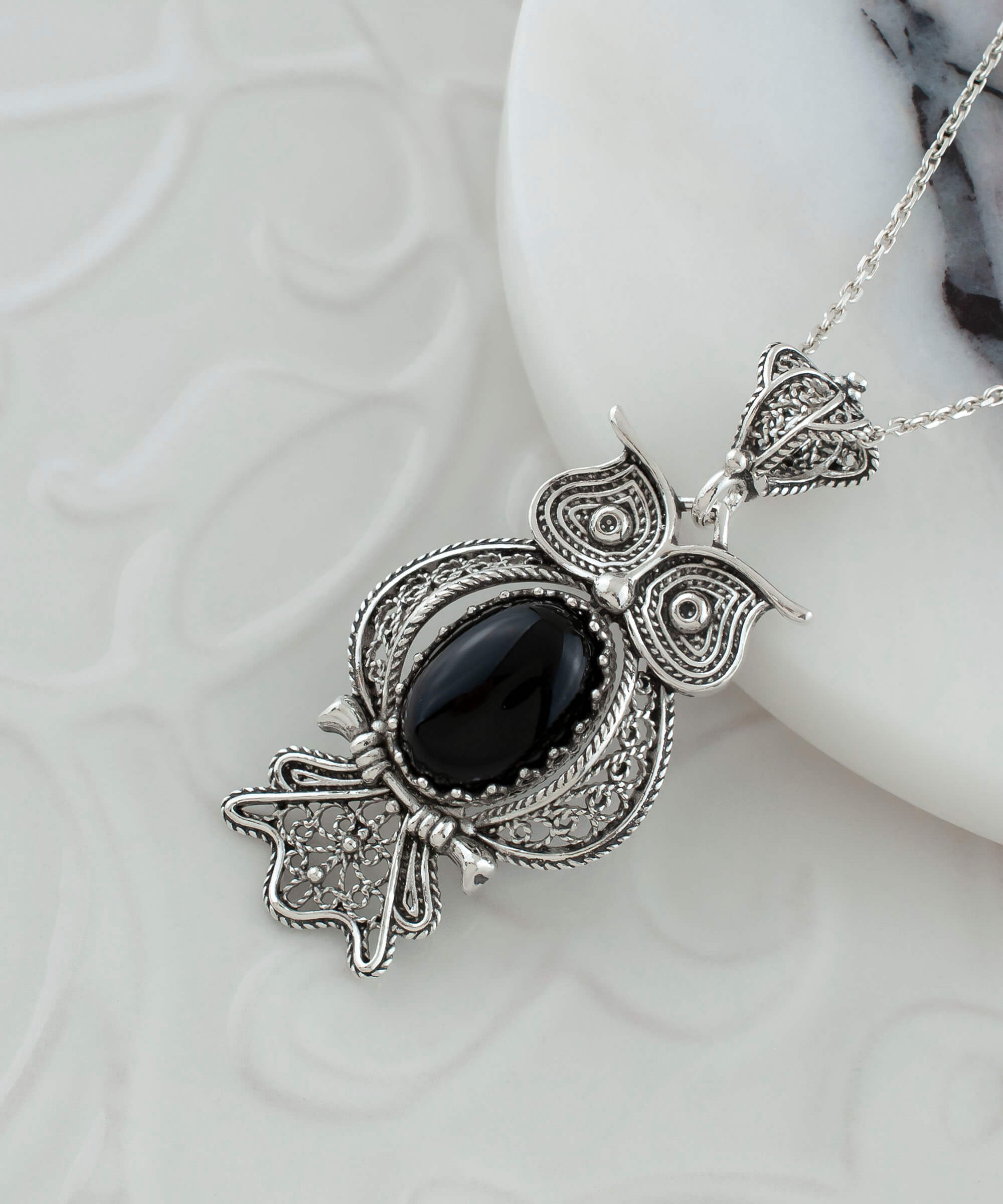 In summary, the Filigree Art Owl Figured Black Onyx Gemstone Women Silver Pendant is not just a piece of jewelry; it is a statement of style and a symbol of wisdom. Its unique design, combined with the protective qualities of Black Onyx, makes it a must-have accessory for any woman. Elevate your jewelry collection with this stunning pendant and enjoy the compliments that come your way!