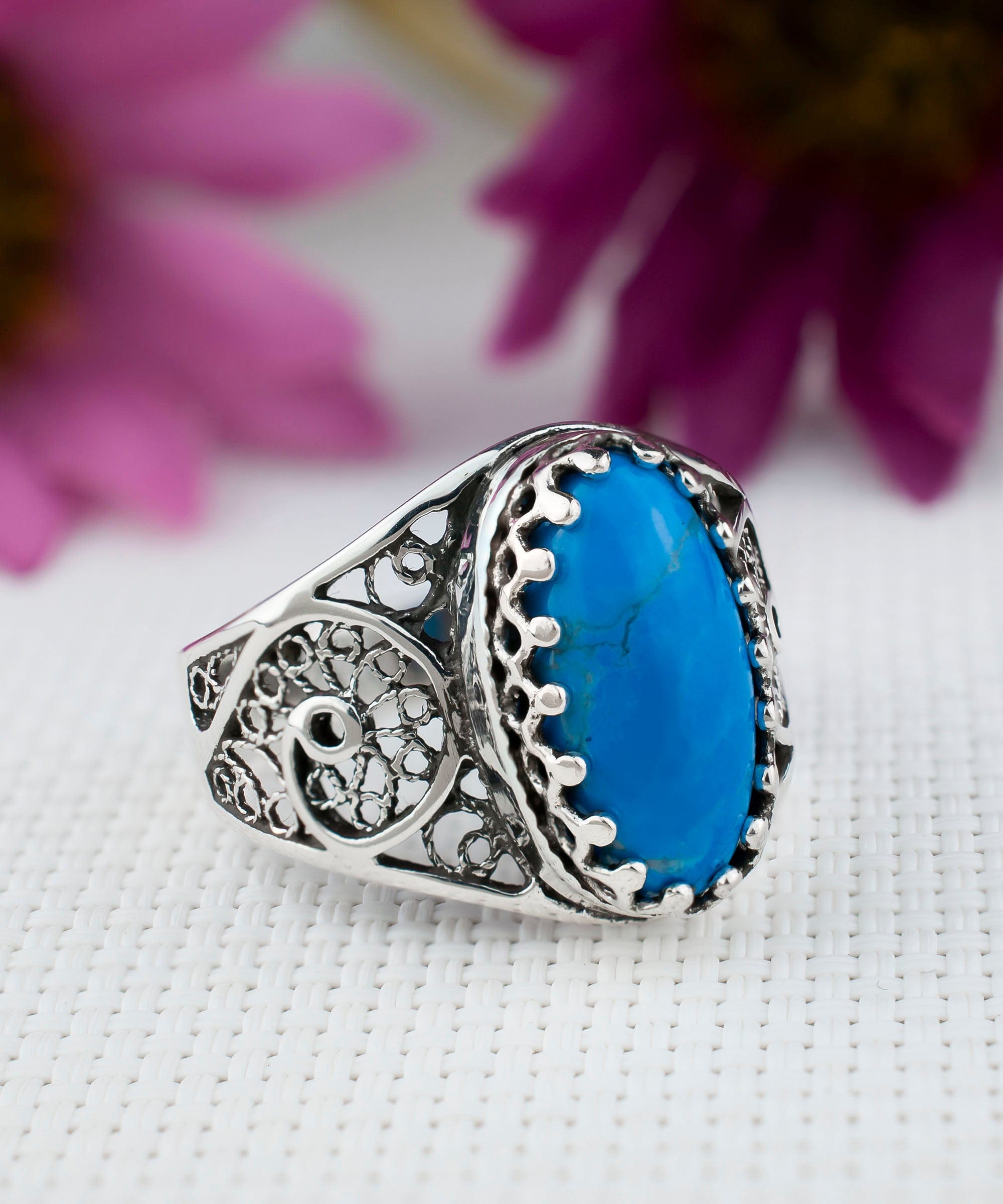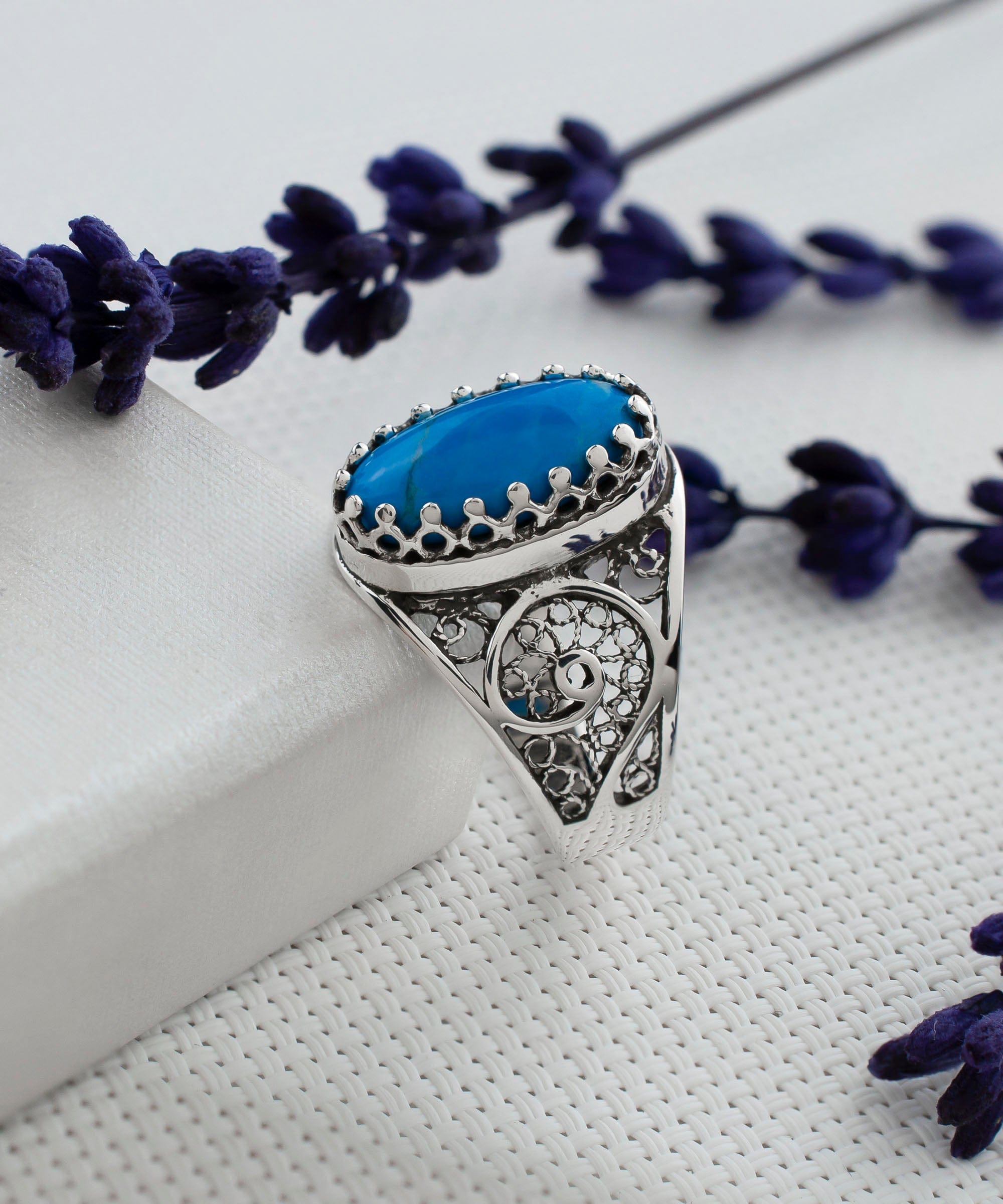 Turquoise is not only a beautiful gemstone but also holds significant meaning in various cultures. It is often associated with protection, healing, and good fortune. Wearing turquoise jewelry is believed to bring peace and tranquility to the wearer. This makes the Filigree Art Turquoise Gemstone Ring not just a fashion statement, but also a meaningful accessory that can enhance your well-being.