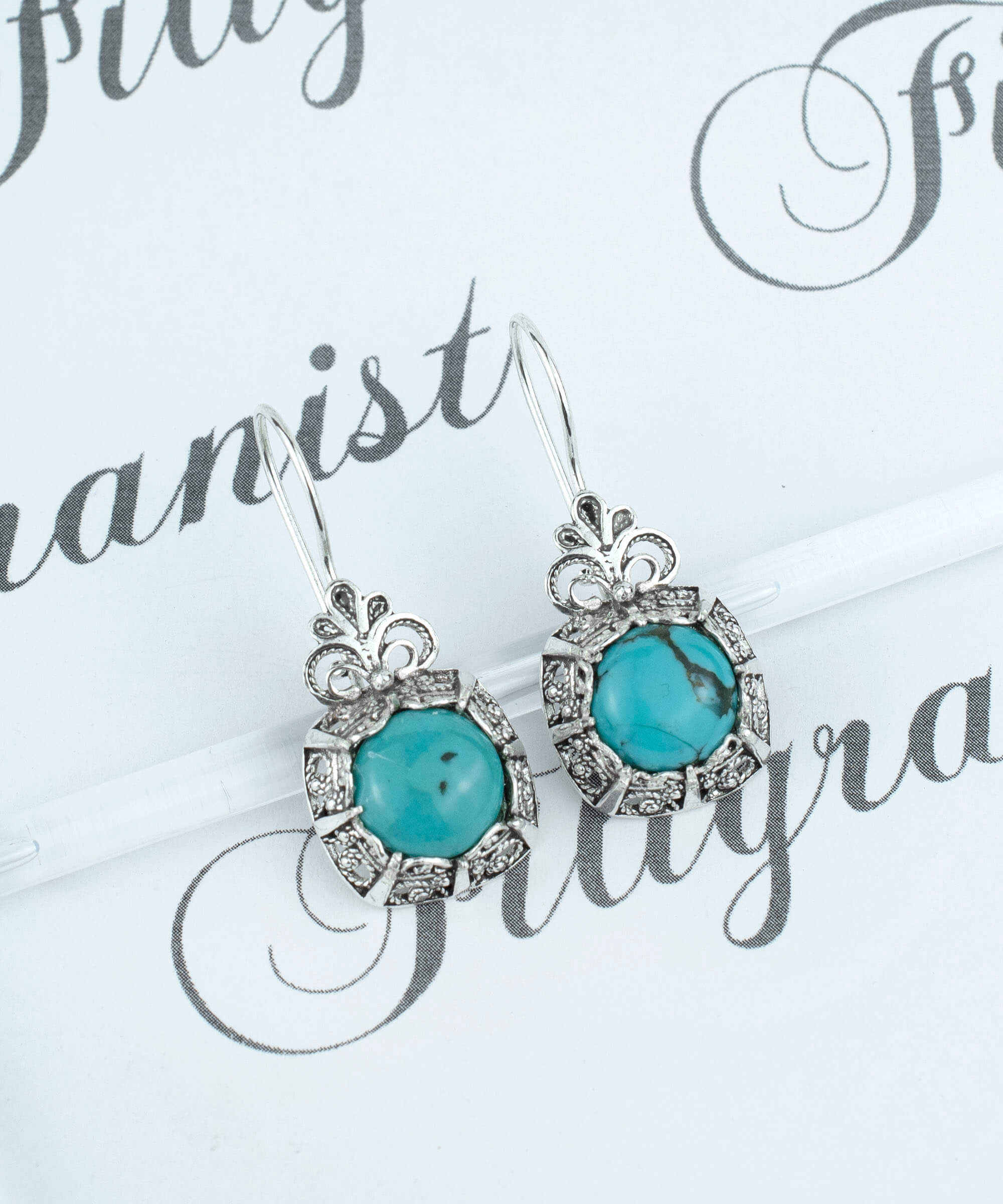 Choosing our Filigree Art Turquoise Gemstone Silver Drop Earrings means investing in a piece of jewelry that combines artistry, quality, and timeless elegance. Each pair is handcrafted with attention to detail, ensuring that you receive a product that is not only beautiful but also durable. Our commitment to quality means that you can wear these earrings with confidence, knowing they will last for years to come.