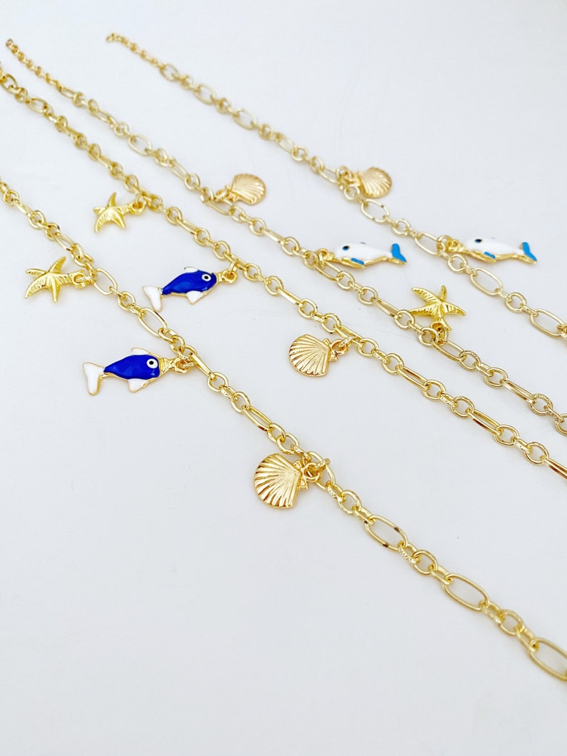 The Fish Anklet is designed with a length of 26 cm, which includes a 4 cm adjustable part, ensuring a comfortable fit for various ankle sizes. The star charm measures 15mm, the seashell charm is 12mm, and the fish charm itself is 20X10mm, creating a harmonious balance of sizes that enhances the overall aesthetic of the anklet. This attention to detail makes it not just a piece of jewelry, but a statement accessory.