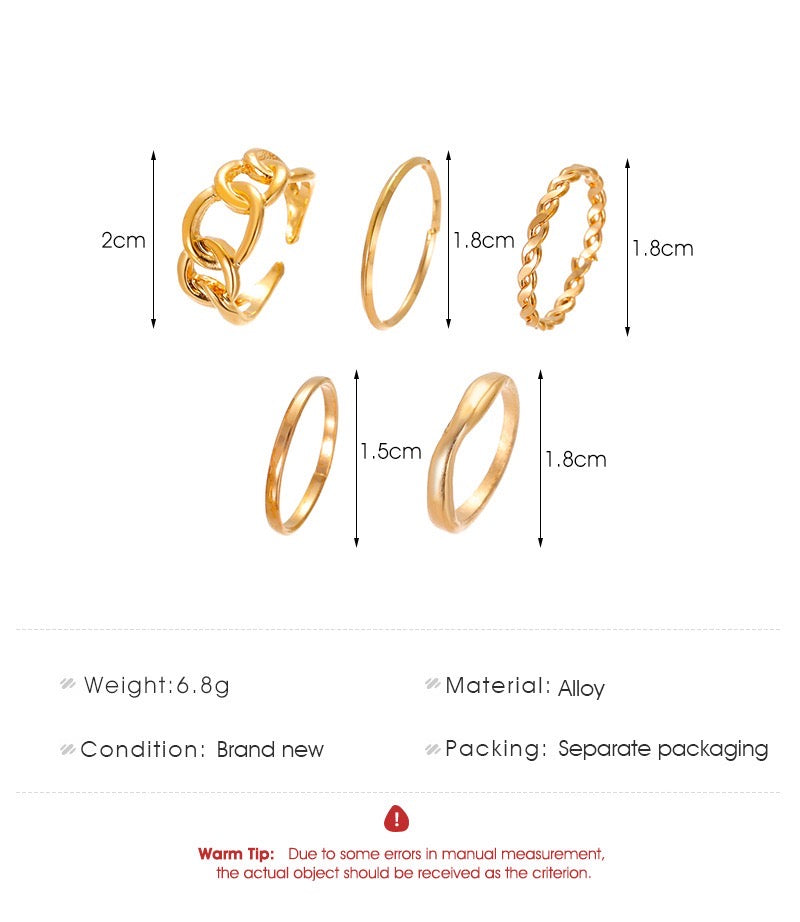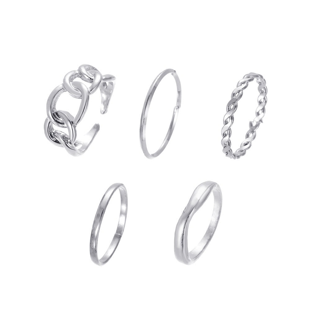 Stylish five-piece ring collection