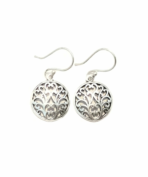 Introducing the exquisite Floral Drop Circle Earrings, a stunning addition to any jewelry collection. These earrings feature a beautiful and elegant floral drop design that is sure to catch the eye. The intricate filigree style cut pattern inside the drop creates the appearance of a delicate flower, making these earrings a perfect accessory for both casual and formal occasions.