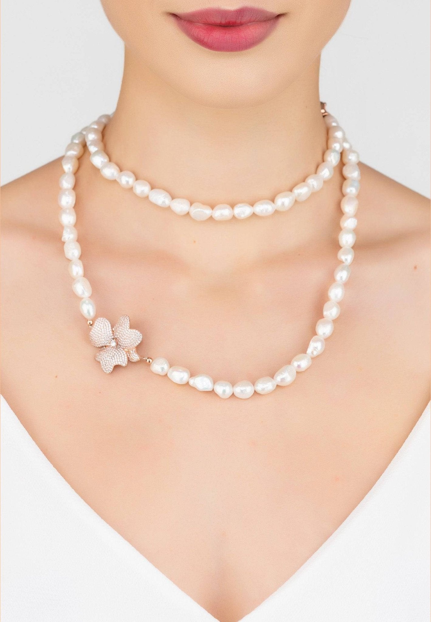 The Flower Pearl Gemstone Long Necklace is incredibly versatile, making it suitable for various occasions. Whether you’re attending a black-tie event, celebrating a wedding, or simply dressing up for a summer gathering, this necklace is the perfect finishing touch. It pairs beautifully with the Flower large studs and baroque pearl flower earrings, creating a cohesive and elegant look.