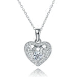 A stunning Gemstone Heart Dancing Necklace made of 925 sterling silver with a white sapphire pendant, showcasing elegance and craftsmanship.