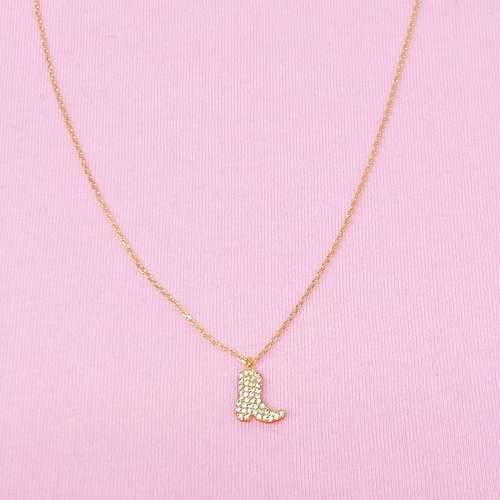 The Glam Cow Girl Boot Necklace is a stunning piece of jewelry that combines elegance with a touch of western charm. This dainty necklace features a beautifully detailed cowgirl boot pendant, making it a perfect accessory for those who love country style or want to add a unique flair to their outfit. Crafted with care, this necklace is designed to be both stylish and comfortable for everyday wear.