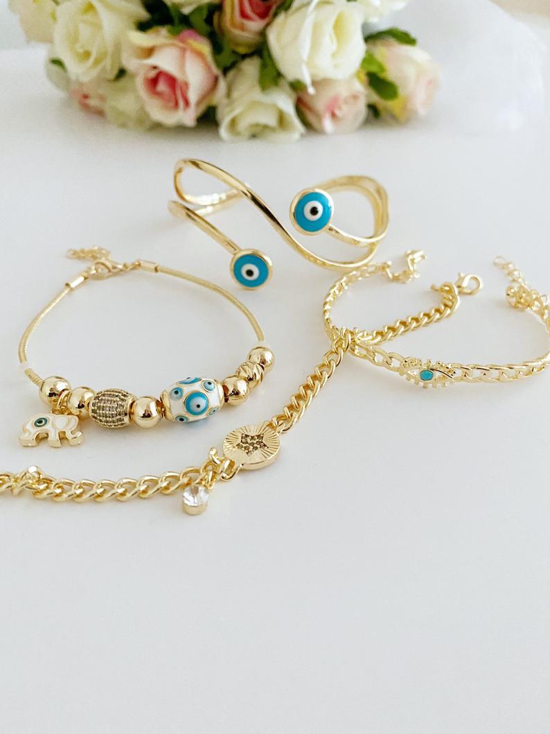 We offer four distinct styles of the Gold Evil Eye Bracelet, allowing you to select the one that best suits your taste. Whether you prefer a classic look or something more contemporary, there is a style for everyone. Be sure to check the second photo for a visual guide to the available styles, and make your choice during checkout.