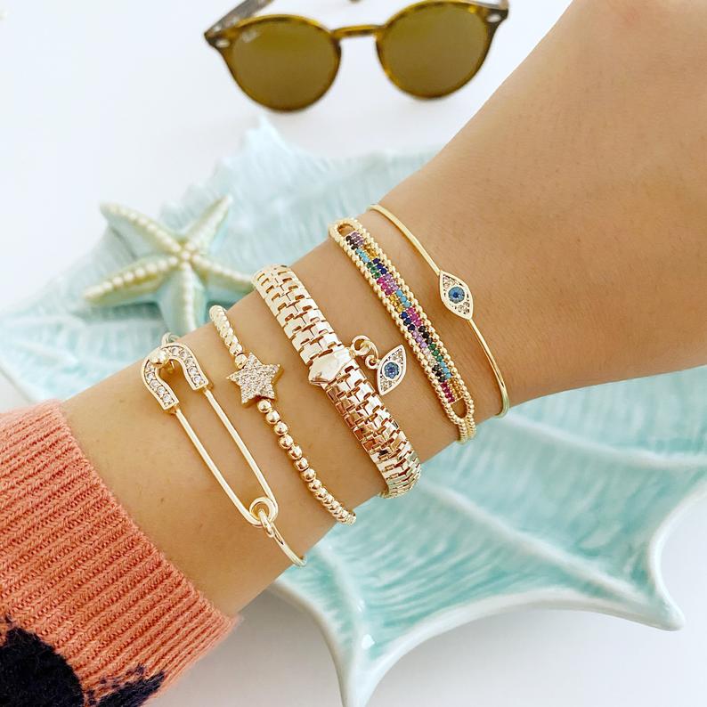 Whether you’re dressing up for a special occasion or looking for a stylish accessory for everyday wear, the Gold Evil Eye Bracelet is the ideal choice. Its versatile design allows it to complement any outfit, from casual to formal. Make a statement and express your individuality with this beautiful piece of jewelry.