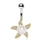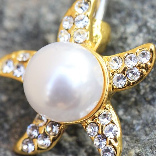 This navel ring has a bar thickness of 14GA (1.6mm) and a bar length of 3/8" (10mm), making it comfortable to wear while providing a secure fit. The starfish itself measures 17 x 17mm, making it a noticeable yet tasteful addition to your jewelry collection. The combination of materials, including gold-plated zinc alloy and synthetic pearl, ensures that this piece is both stylish and affordable.