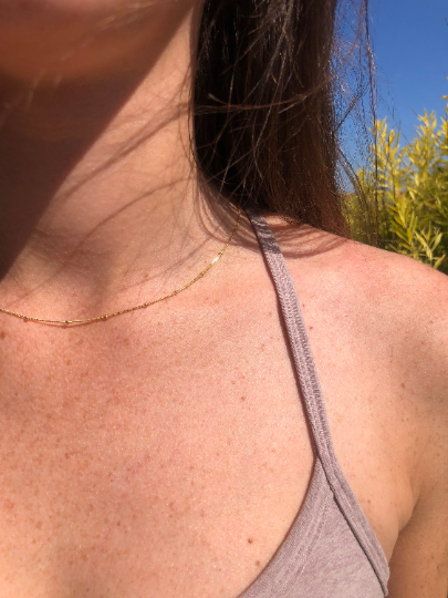 The Gold Saturn Necklace is characterized by its thin gold ball bead chain, which catches the light beautifully, creating a shimmering effect that enhances your overall look. Its simple yet elegant design makes it versatile enough to be worn alone or layered with other necklaces, allowing you to express your personal style. The delicate nature of the chain adds a dainty touch, making it suitable for women of all ages.