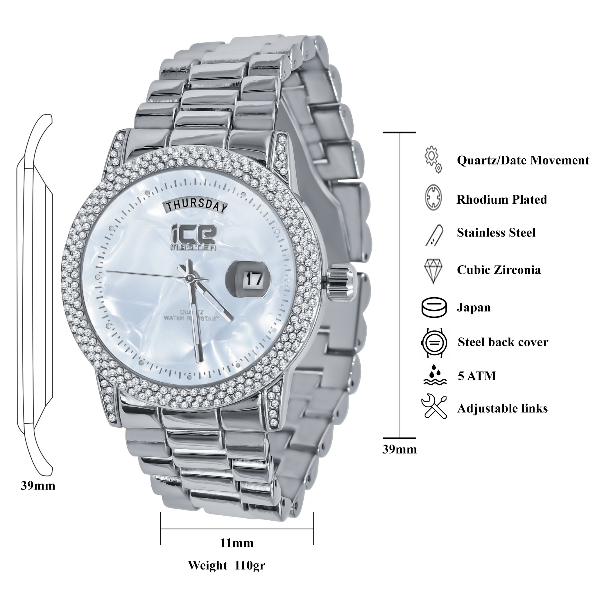 The GRANDEUR HIP HOP METAL watch is a true reflection of opulence and style, designed for those who appreciate luxury in their accessories. This exquisite timepiece is not just a watch; it is a statement of sophistication and elegance. With its beautifully polished chain and sparkling CZ stones adorning the dial, this watch is perfect for both casual daytime wear and evening attire, adding a touch of propriety and urbanity to any outfit.