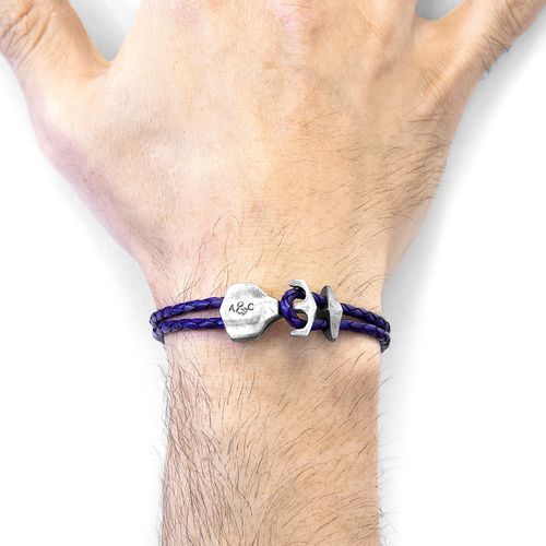 The Grape Purple Delta Anchor Silver and Braided Leather Bracelet was both designed and skilfully handcrafted completely in Great Britain. Combining British craft manufacturing with a discerning modern-minimalist style, this ANCHOR & CREW bracelet features:
