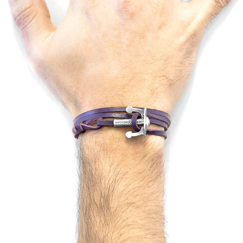 The Grape Purple Union Anchor Silver and Flat Leather Bracelet was both designed and skilfully handcrafted completely in Great Britain. Combining British craft manufacturing with a discerning modern-minimalist style, this ANCHOR & CREW bracelet features: