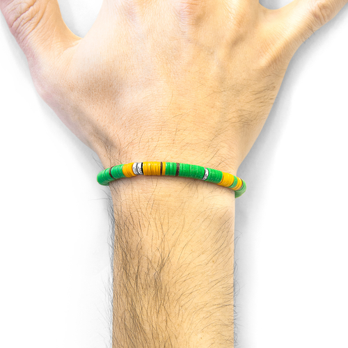 The Green Malawi Silver and Vinyl Disc Bracelet was both designed and skilfully handcrafted completely in Great Britain. Combining British craft manufacturing with a discerning modern-minimalist style, this ANCHOR & CREW bracelet features: