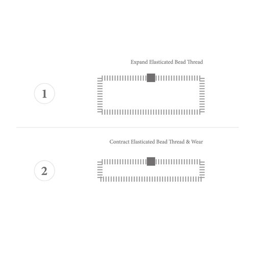 This bracelet is available in four bracelet lengths, 17cm, 19cm, 21cm or 23cm in circumference, with the elastic nylon thread able to expand to fit onto your wrist. To take the bracelet on or off your wrist, simply slide the bracelet over your hand.