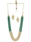 Green Pearls & Kundan Ethnic Mala Long Necklace Set with Drop Earrings