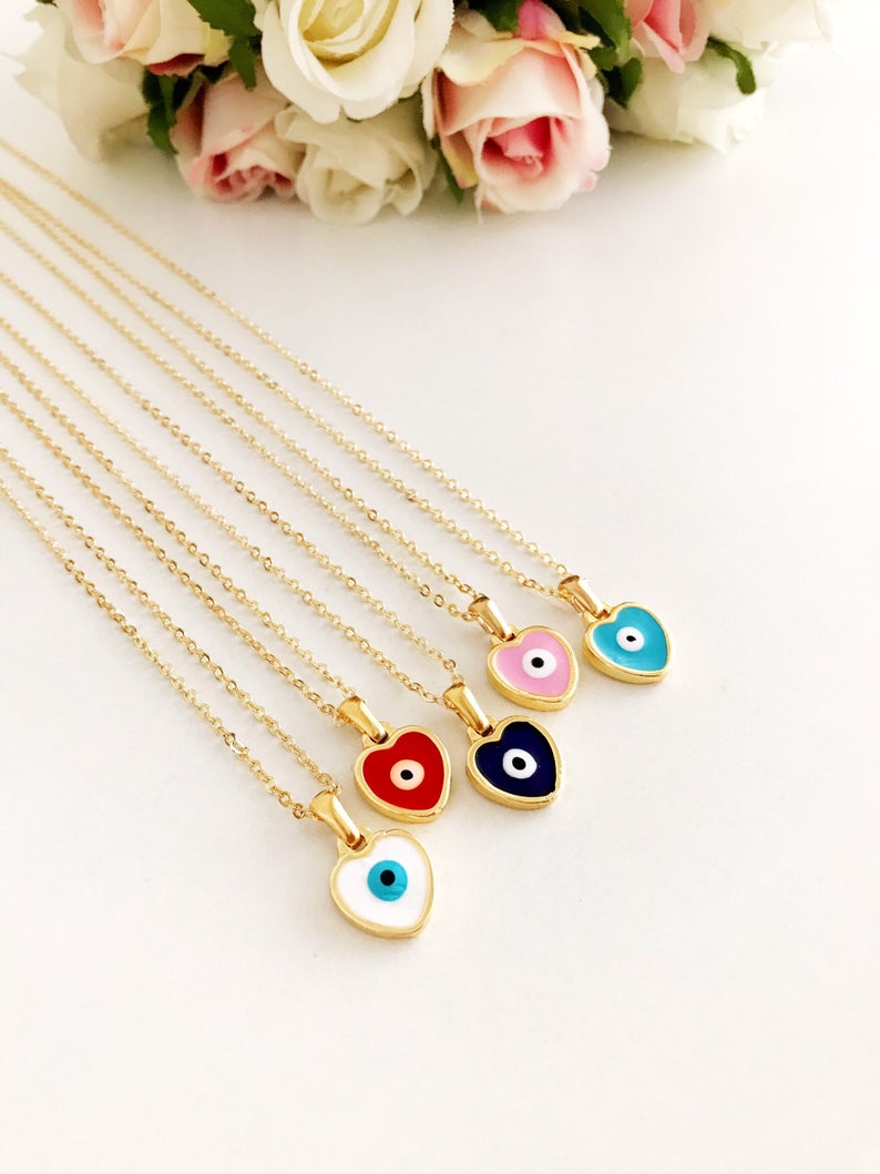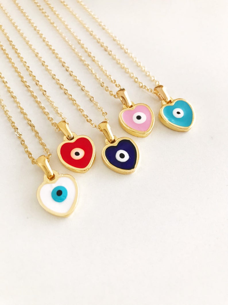 In summary, the Heart Evil Eye Necklace is more than just a piece of jewelry; it is a symbol of love, protection, and individuality. With its handmade quality, customizable charm colors, and elegant design, it is a must-have accessory for anyone looking to enhance their jewelry collection.
