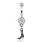 The small high heel cowgirl boot featured in this navel ring is partially black plated, giving it an antique look that is both trendy and timeless. This vintage style is perfect for those who appreciate unique accessories that stand out. The boot is adorned with three clear cubic zirconia (CZ) stones, adding a touch of sparkle and elegance to the overall design.