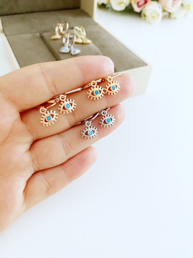 Each pair of our evil eye hoop earrings is meticulously handmade, ensuring that every piece is unique. The earrings feature a beautiful evil eye charm, which is a symbol of protection and good fortune. The hoops are designed with a latch back closure, making them easy to wear and secure throughout the day.