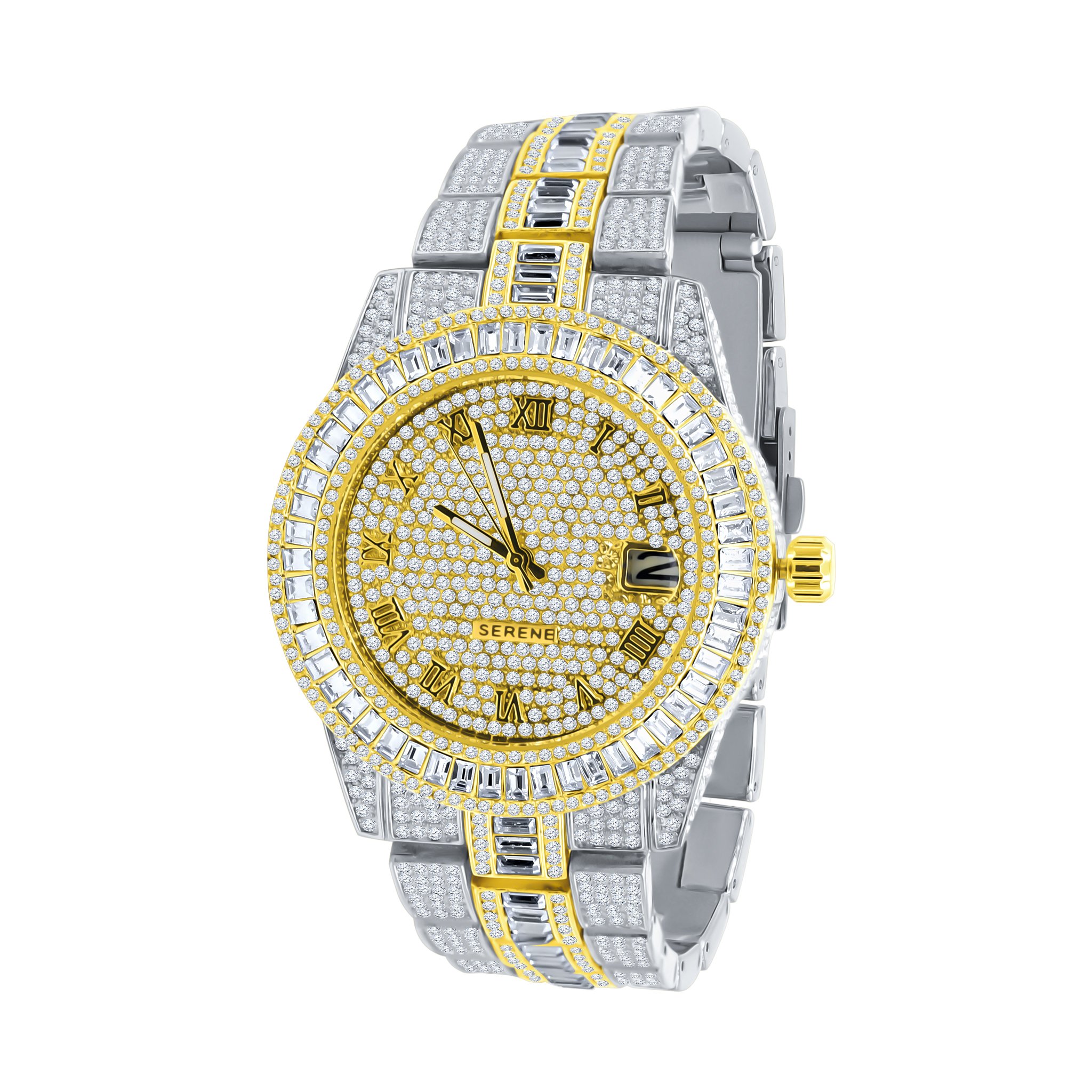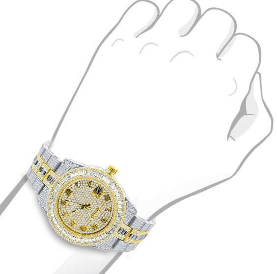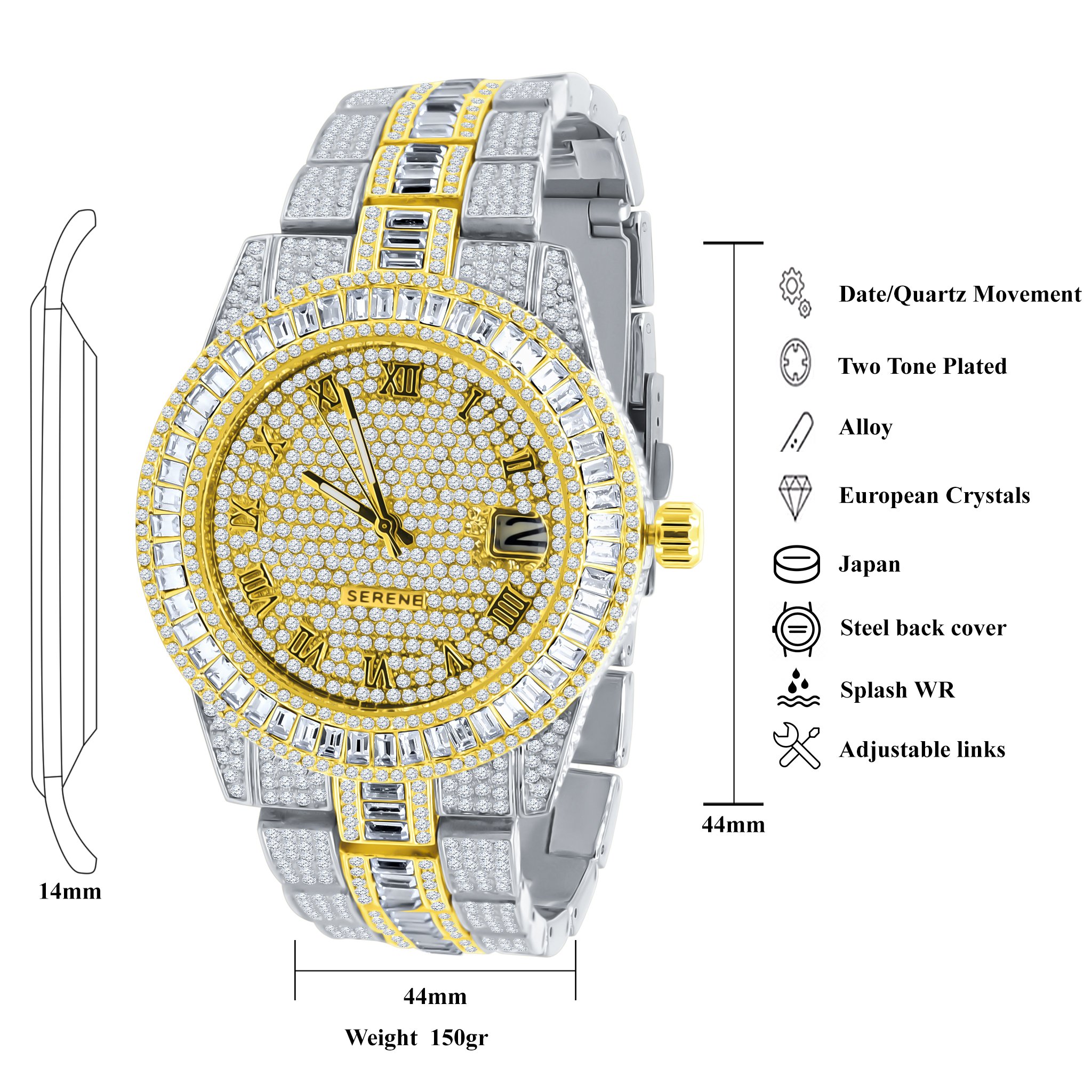 The watch boasts a faultless European crystal bezel that enhances its overall aesthetic. The combination of the CZ stones and the crystal bezel creates a dazzling effect that is sure to turn heads. With a length of 44 MM and a width of 14 MM, this watch is designed to make a bold statement without being overly bulky.