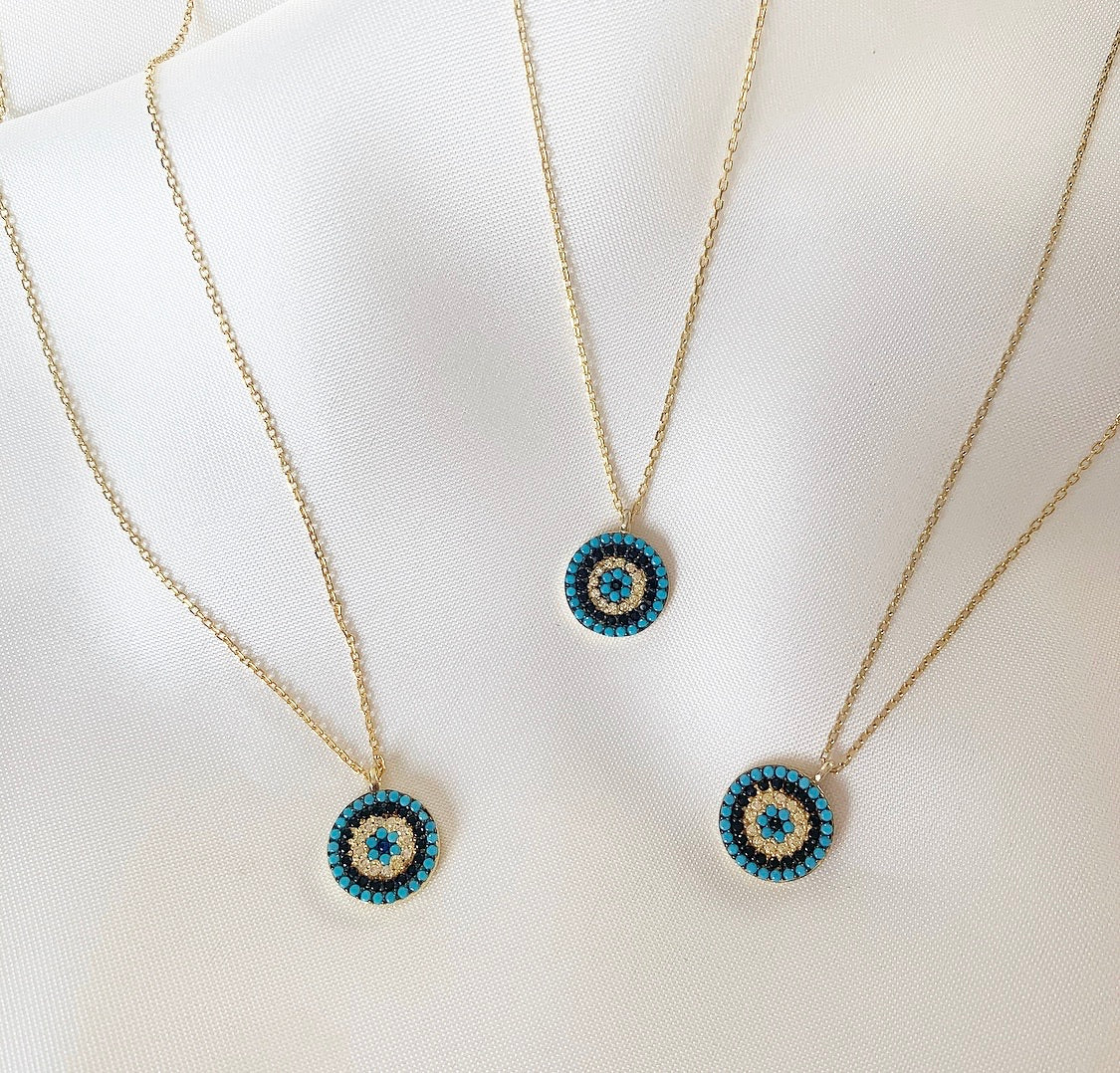 The IRENE Necklace features a contemporary evil eye design that is both stylish and meaningful. The evil eye symbol has been used for centuries in various cultures to ward off negativity and bring good fortune. With its delicate appearance, this necklace can be worn alone for a subtle look or layered with other pieces for a more dramatic effect.