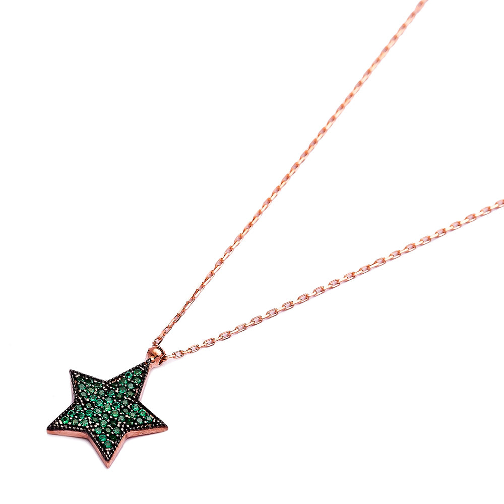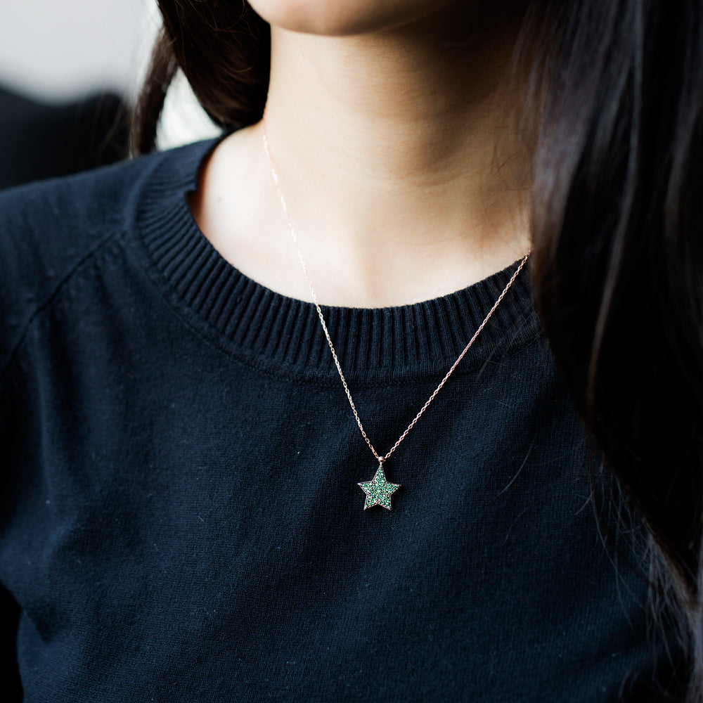 At the heart of the ISRA Star Necklace are the dazzling emerald cubic zirconias. These stones are known for their brilliance and clarity, mimicking the appearance of real emeralds without the hefty price tag. The pave setting allows for maximum light reflection, making the necklace sparkle beautifully in any light. Whether you're dressing up for a special event or adding a touch of glamour to your everyday wear, this necklace is sure to turn heads.