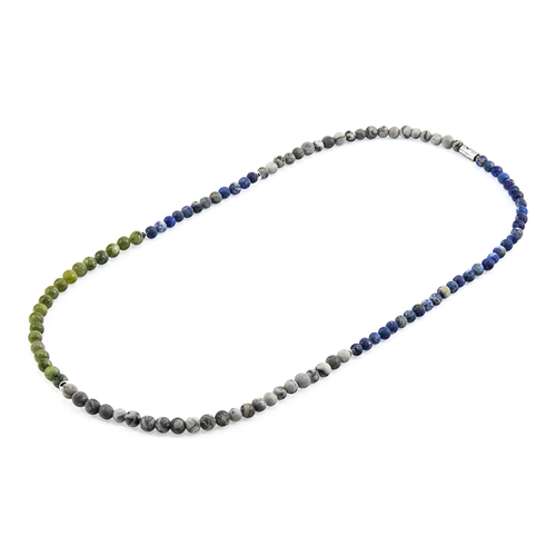 The Grey Jasper, Green Jade and Blue Sodalite Isaac Silver and Stone SKINNY Necklace x Wrap Bracelet was both designed and skilfully handcrafted completely in Great Britain. Combining British craft manufacturing with a discerning modern-minimalist style, this ANCHOR & CREW necklace x wrap bracelet features: