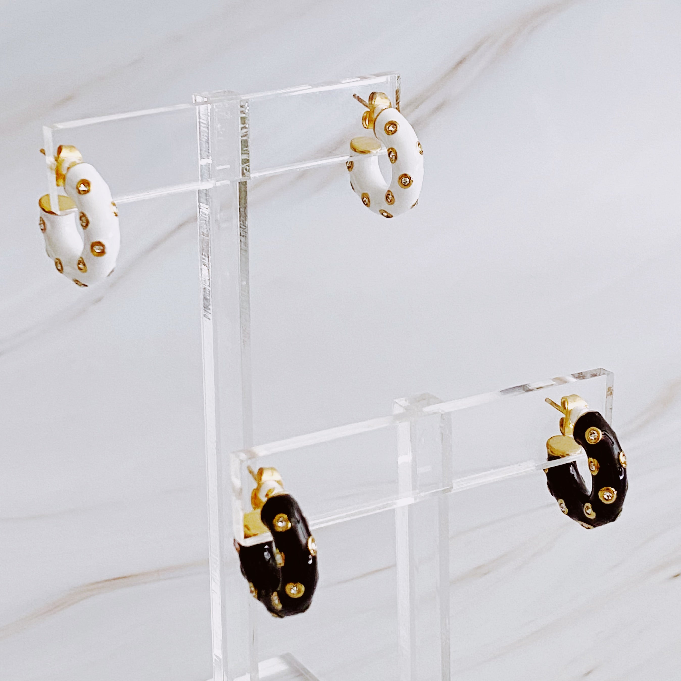 These earrings make a wonderful gift for birthdays, anniversaries, or just because. They come beautifully packaged, ready to delight your loved ones. Whether you're treating yourself or someone special, the Jeweled Candy Everyday Hoop Earrings are sure to impress.