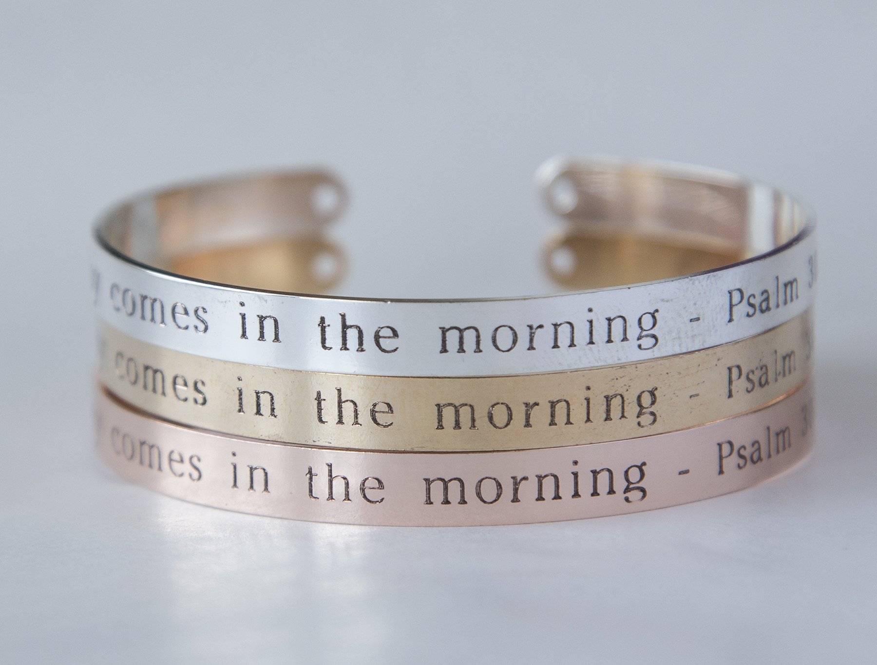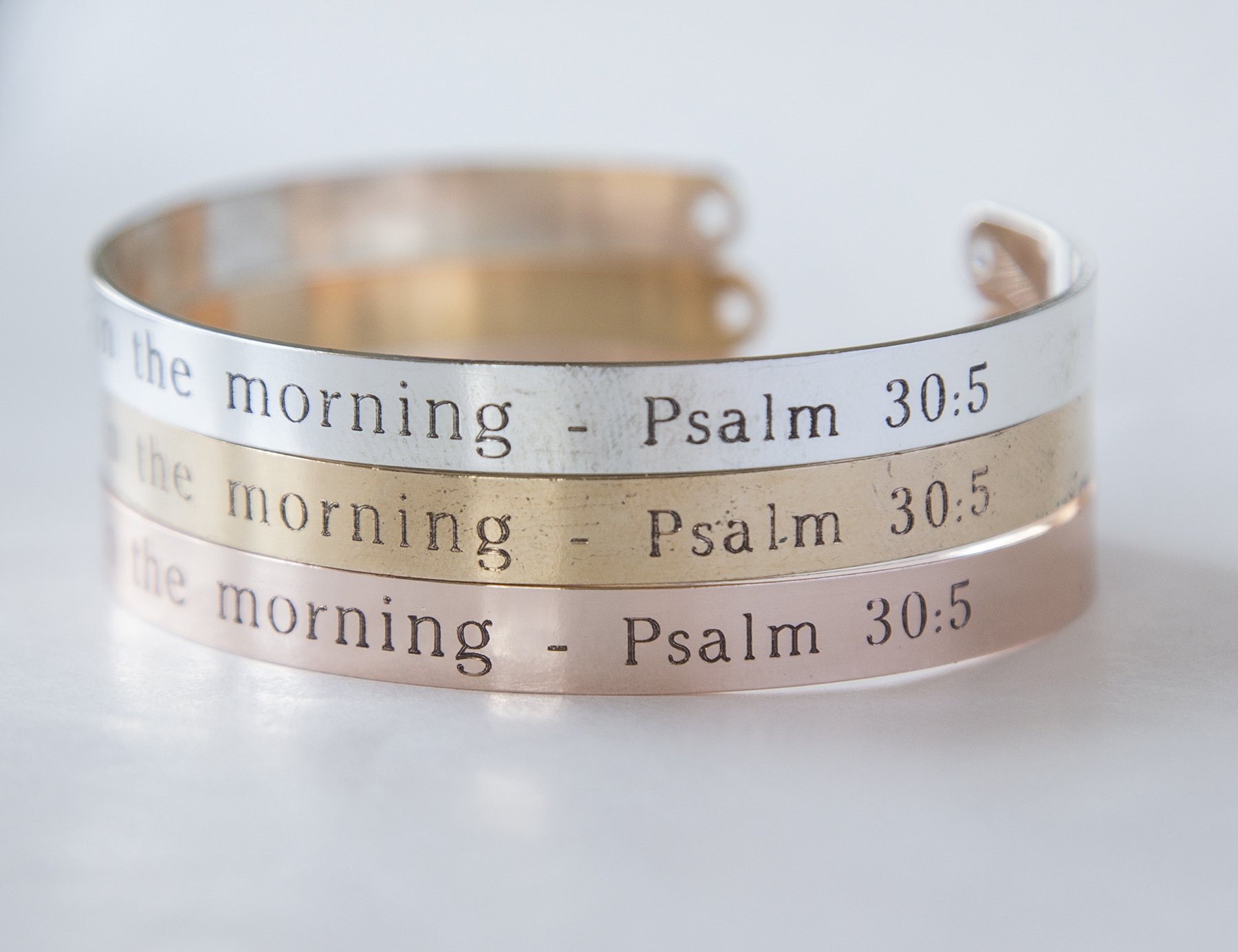 The Joy Comes in the Morning Bracelet is a stunning Christian cuff bracelet that beautifully encapsulates the essence of faith and hope. Inspired by the uplifting message of Psalm, this delicate piece serves as a daily reminder of joy and resilience. Crafted with care, it is designed to be both stylish and meaningful, making it an ideal gift for loved ones or a special treat for yourself.